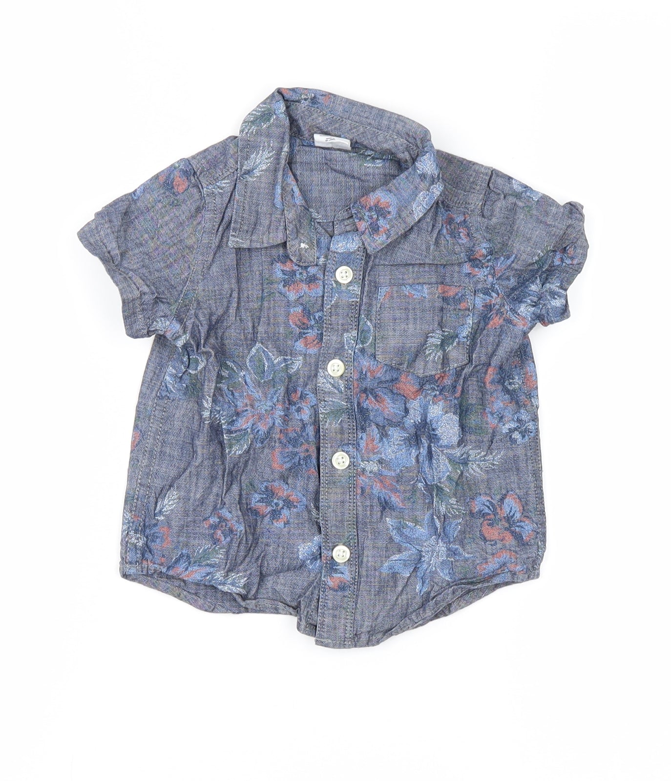Gap Boys Blue Floral Basic Button-Up Size 12-18 Months