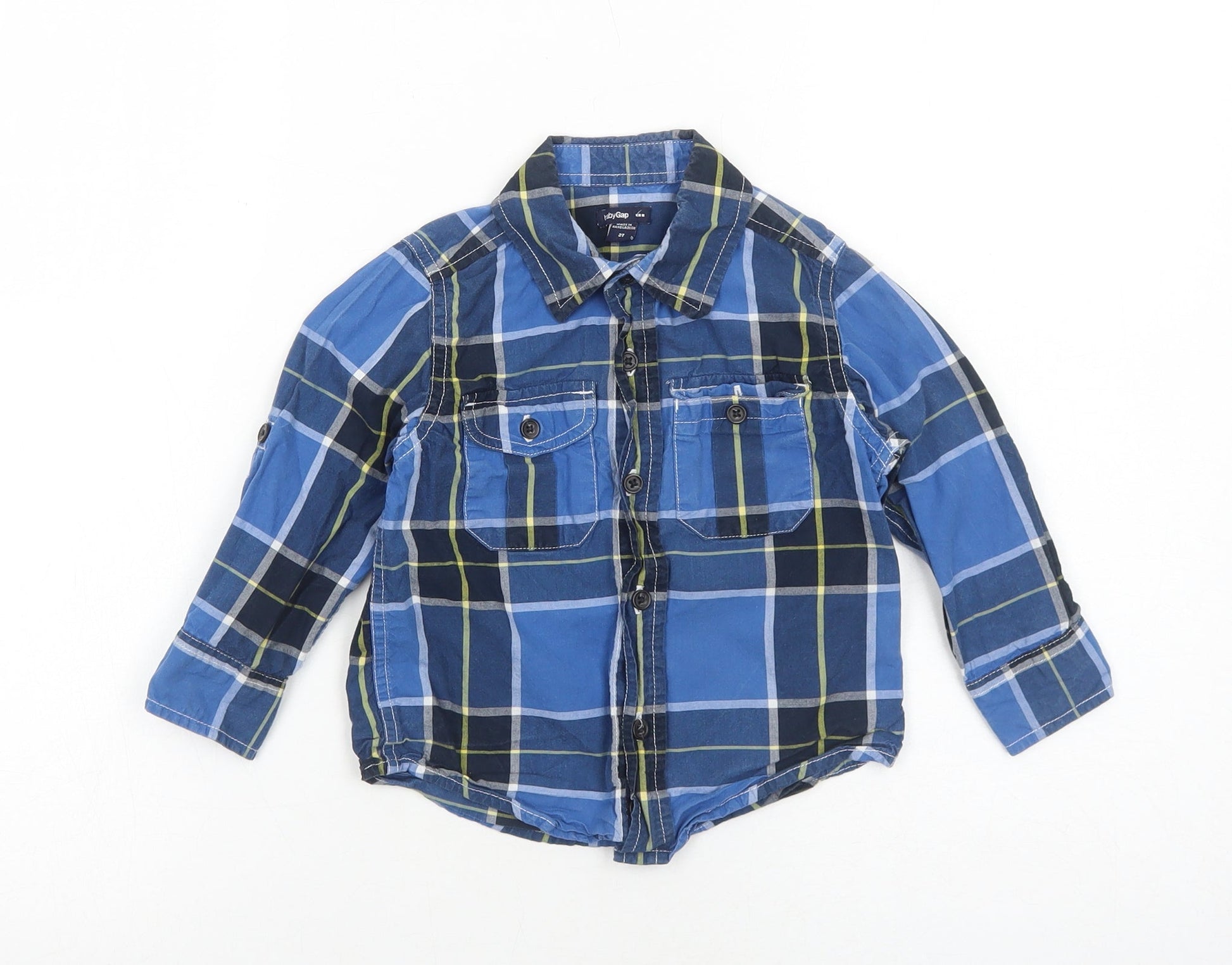 Gap Boys Blue Plaid Cotton Basic Button-Up Size 2 Years Collared Button