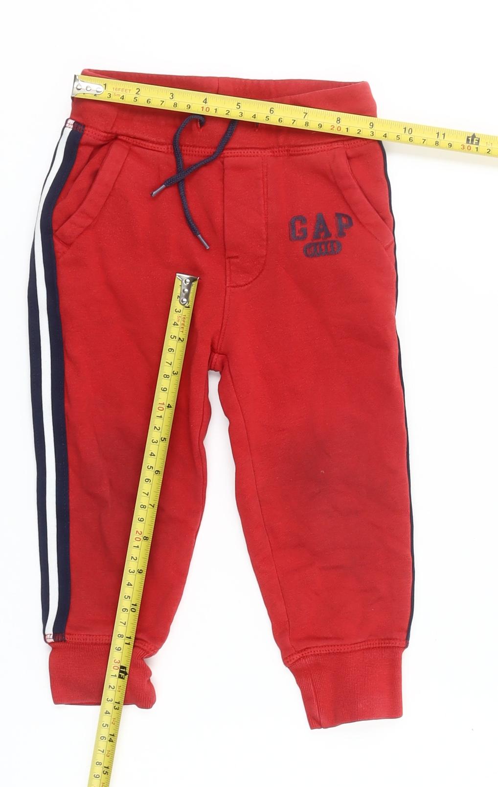 GAP Boys Red Jogger Sweatpants 2 Years Elastic Waist Side Stripe