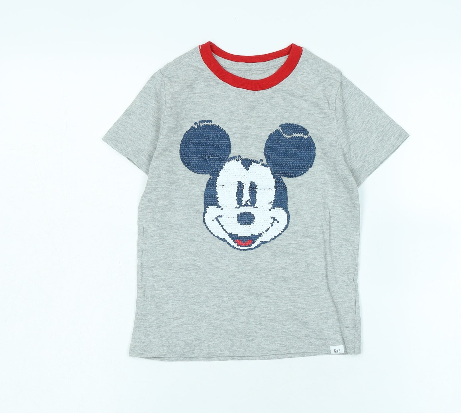 GAP Disney Girls Grey Mickey Mouse Ringer T-Shirt 5 Years