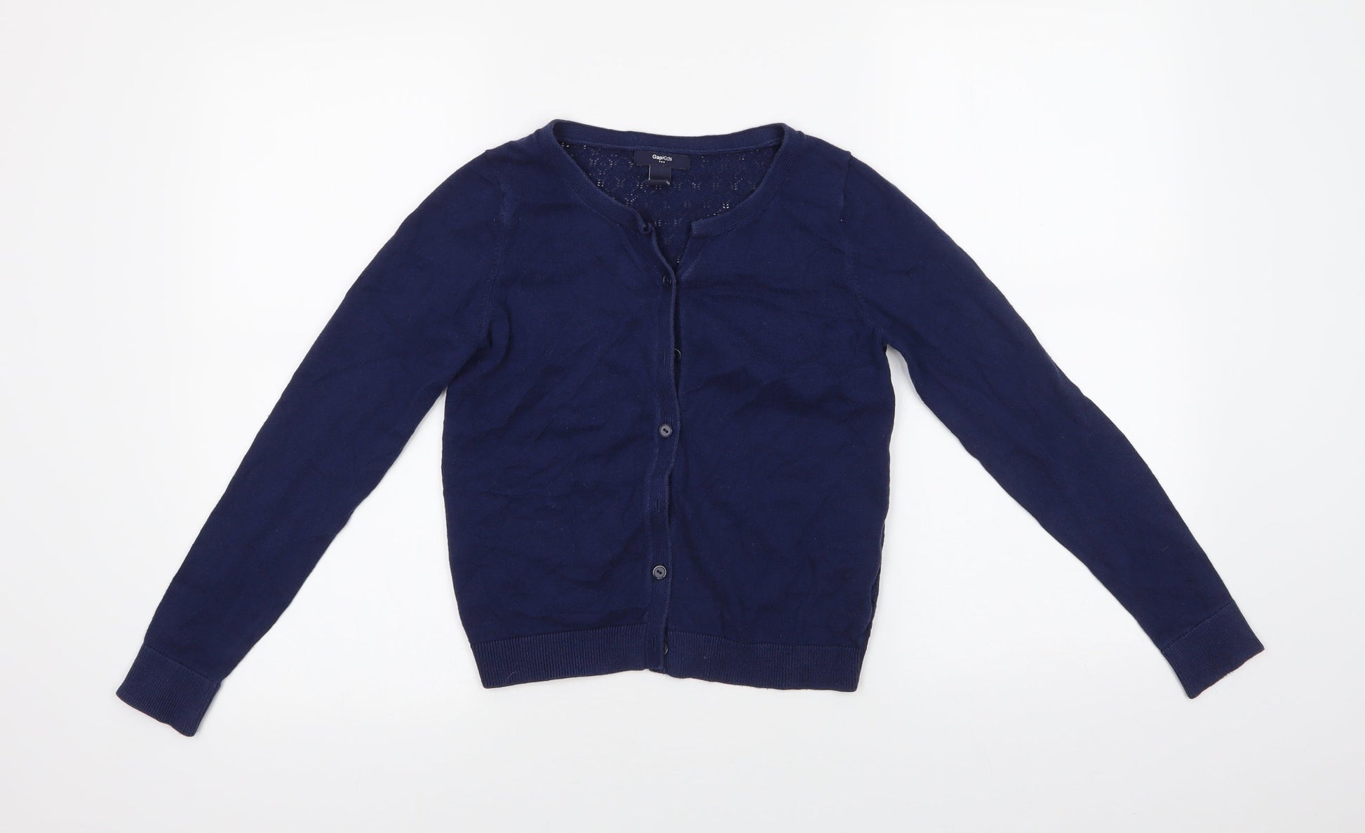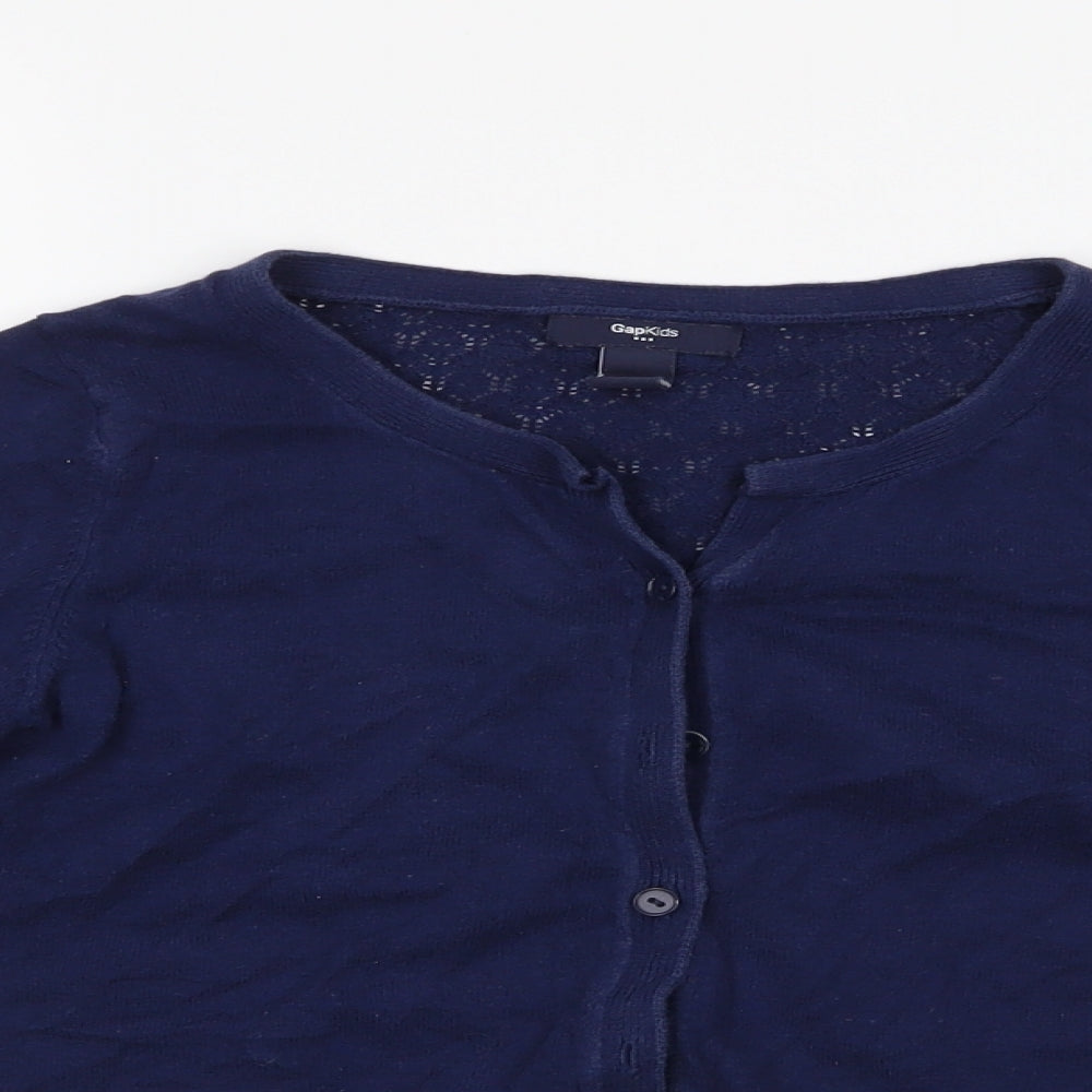 Gap Girls Blue Crew Neck Cotton Cardigan Jumper Size 12 Years Button