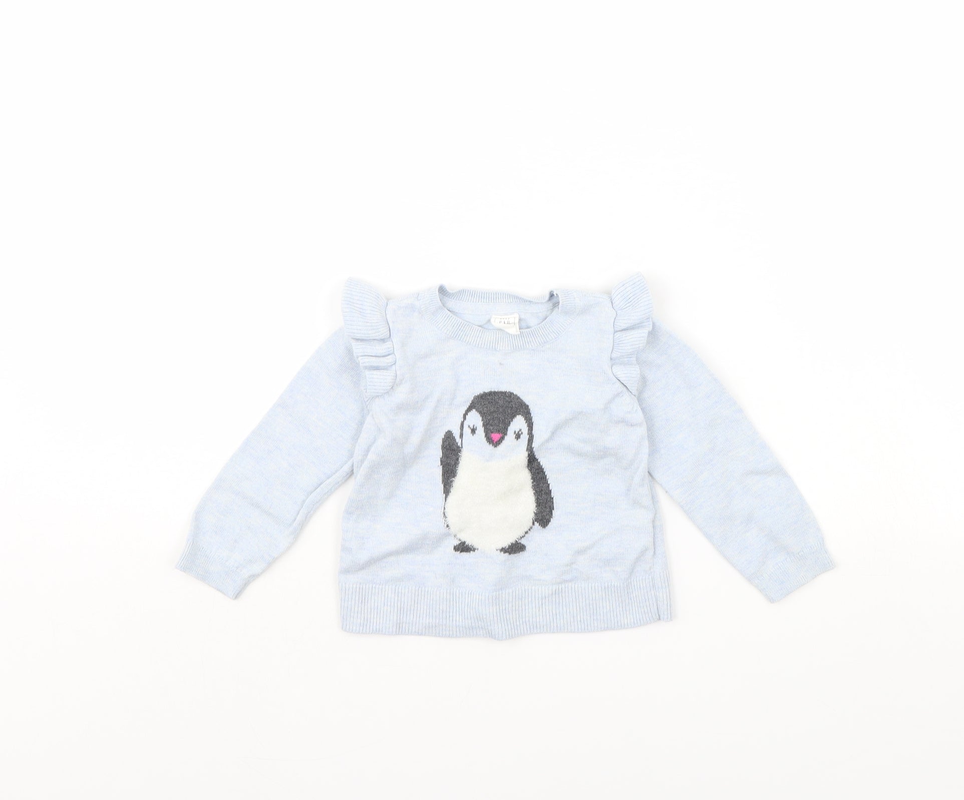 Gap Girls Blue Pullover Jumper Size 2 Years - Penguin