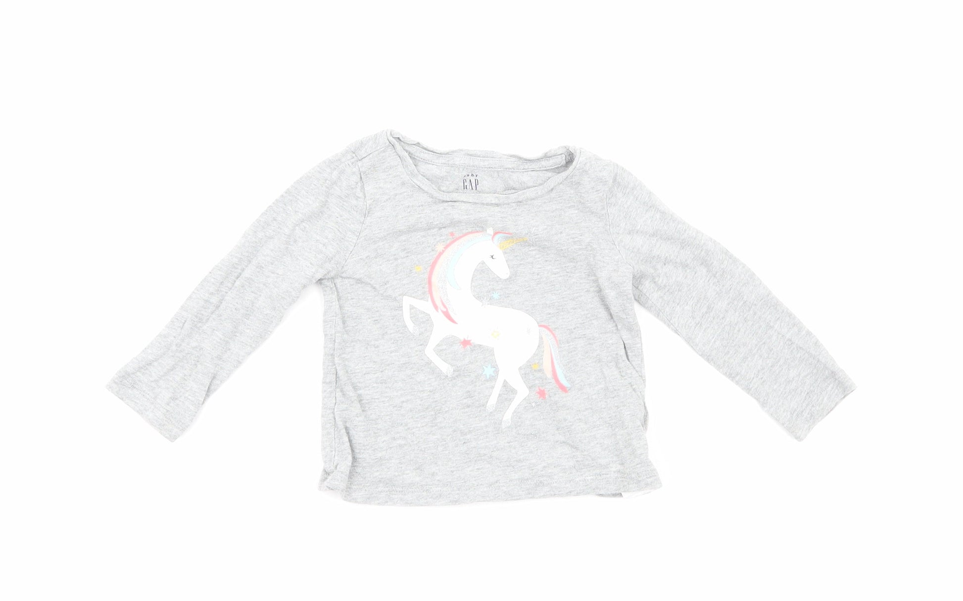 Gap Girls Grey Cotton Basic T-Shirt Size 12-18 Months Round Neck Pullover - Unicorn Print