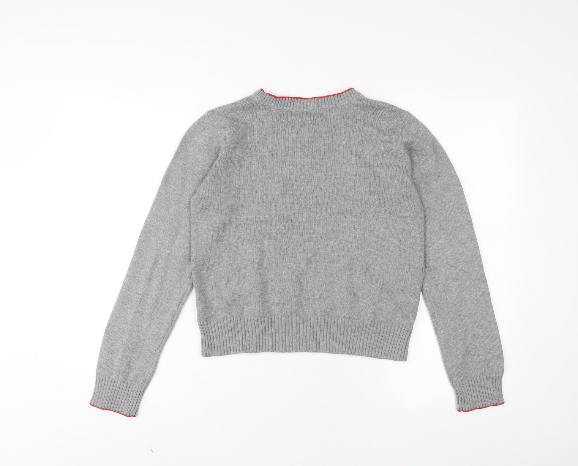 Gap Girls Grey Crew Neck Cotton Pullover Jumper Size 13 Years Pullover - Happy