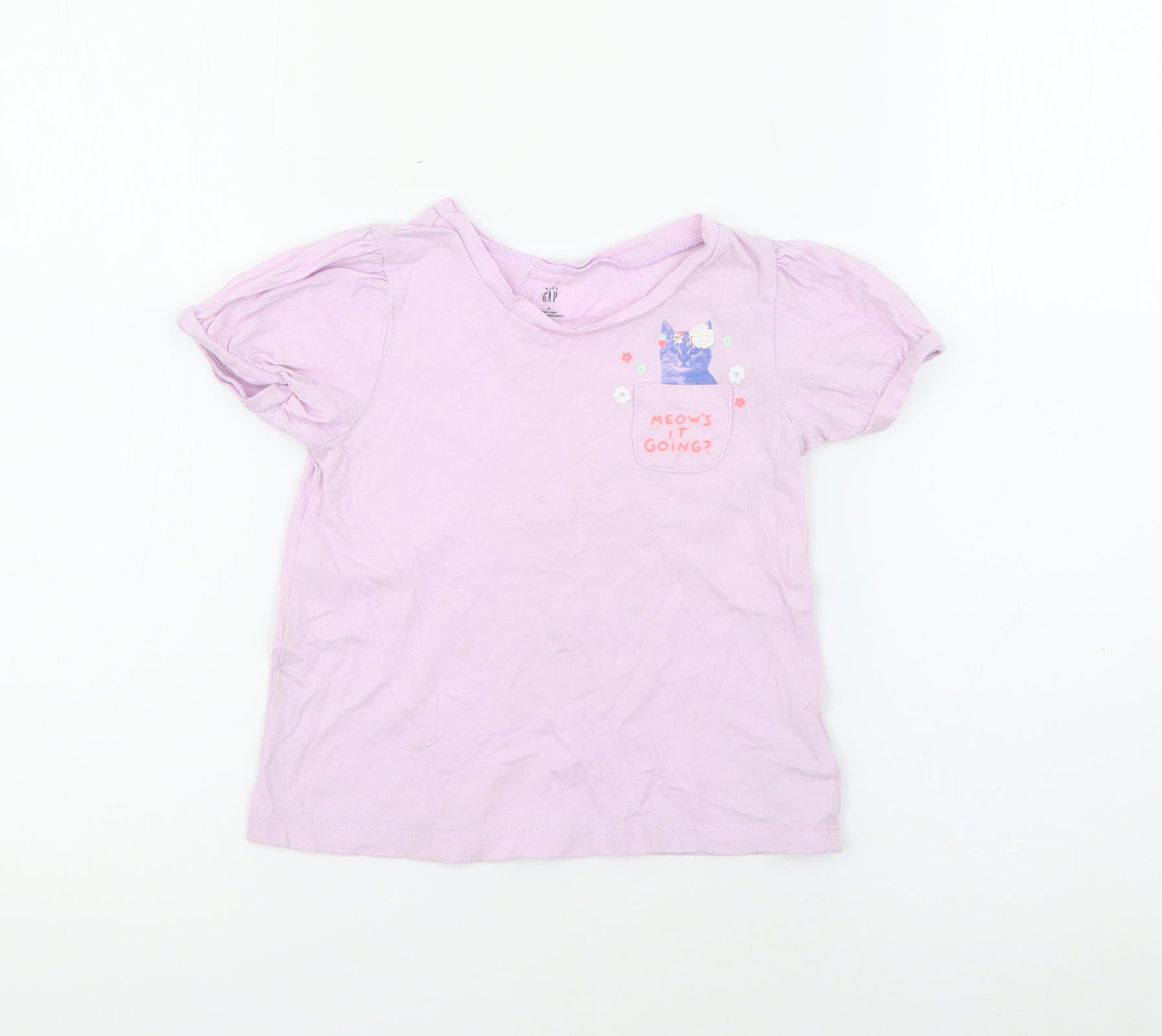 Gap Girls Purple Cotton Basic T-Shirt Size 3 Years Crew Neck - Cat