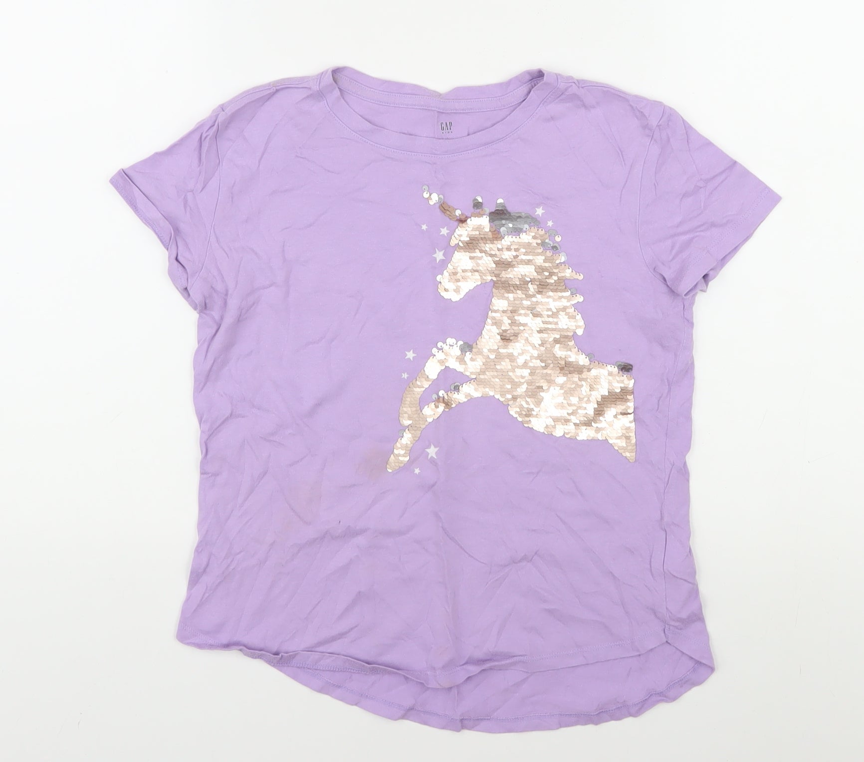 GAP Girls Purple Unicorn Sequin T-Shirt 10-11 Years Cotton