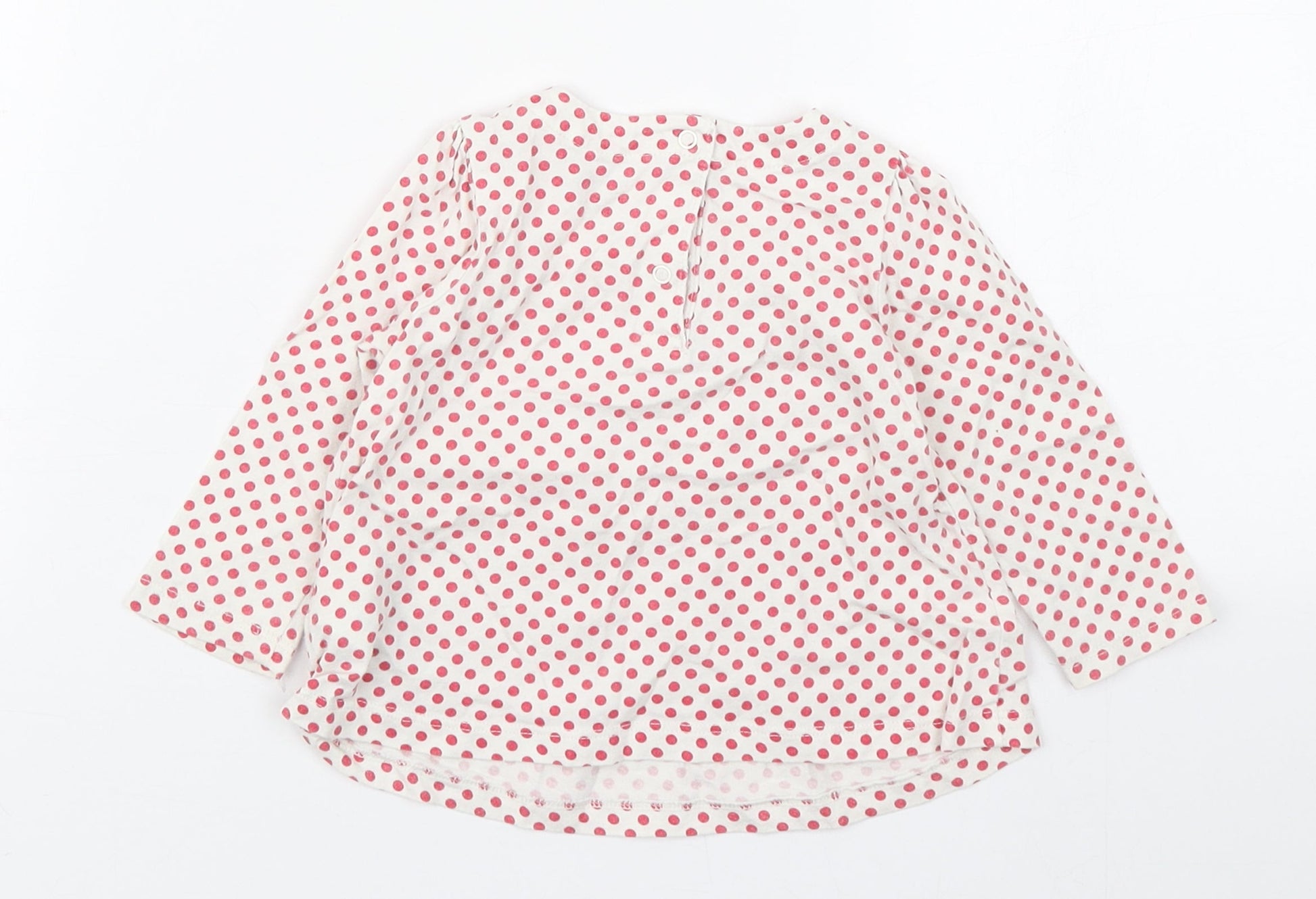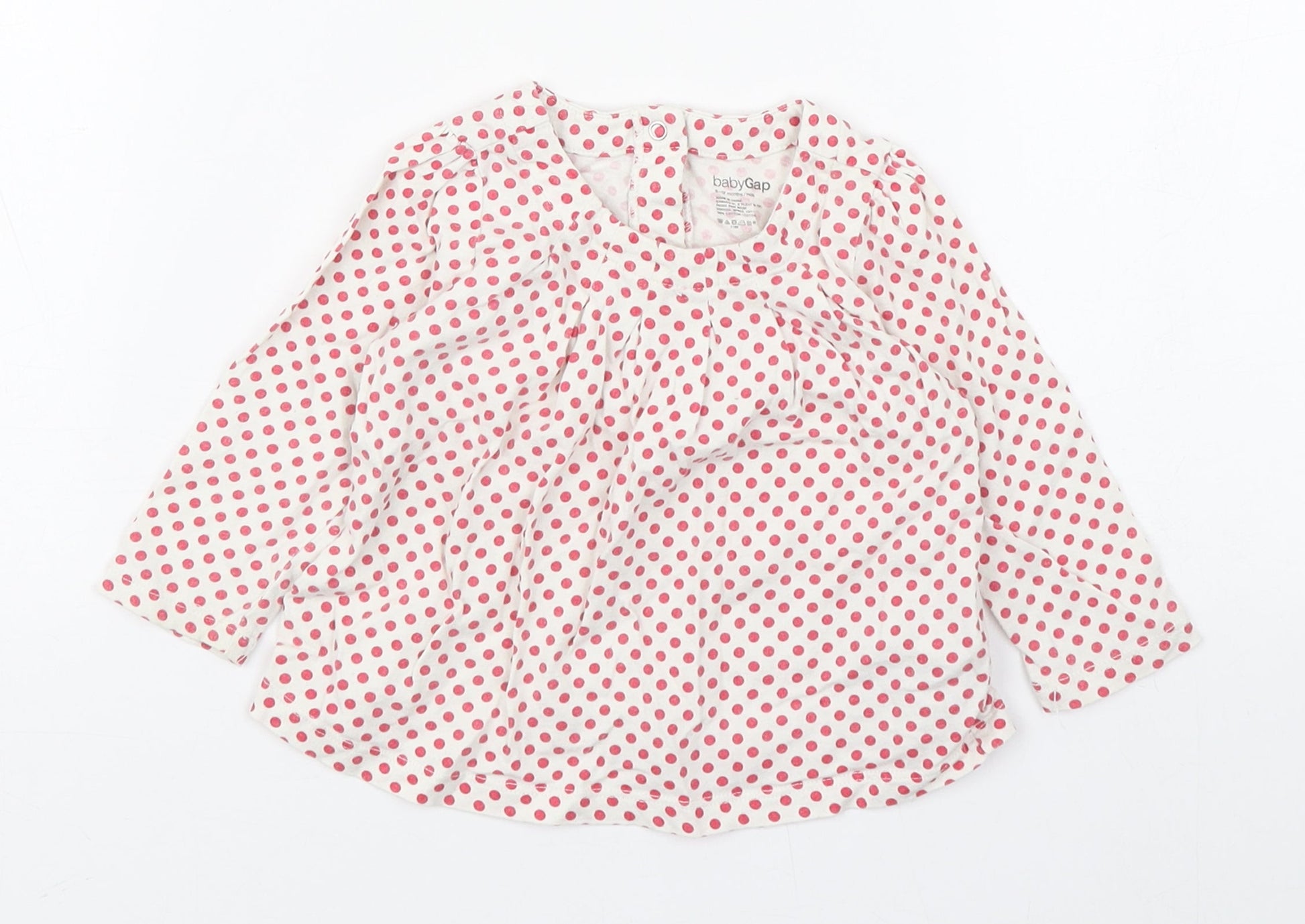 Gap Girls White Polka Dot 100% Cotton Basic T-Shirt Size 6-9 Months Scoop Neck Button