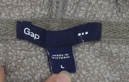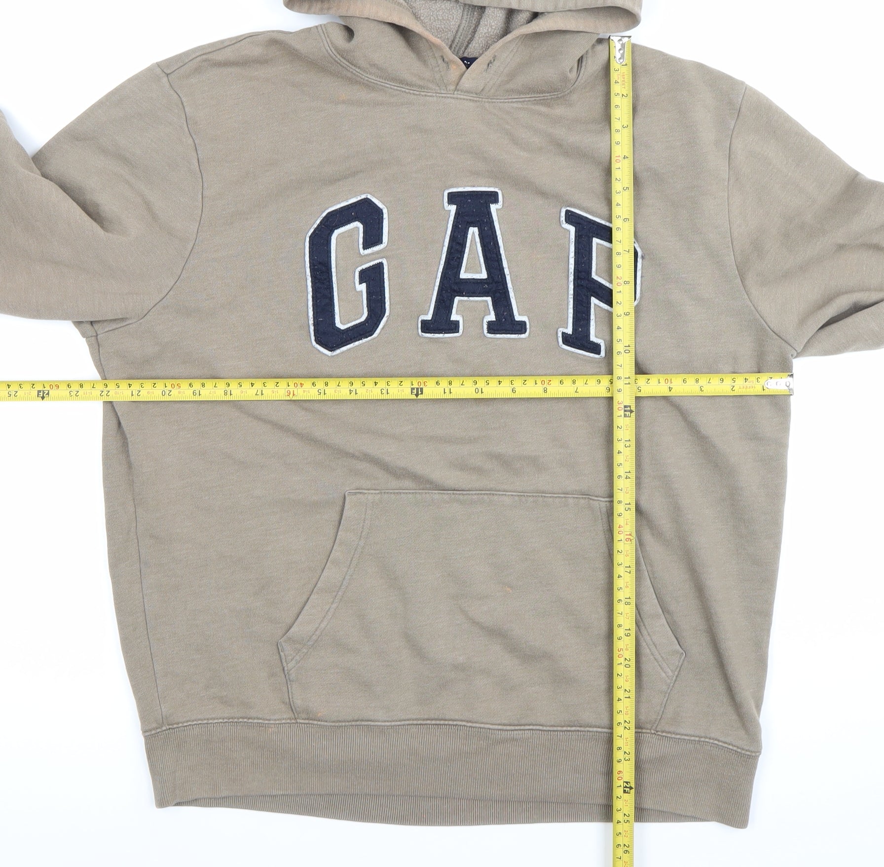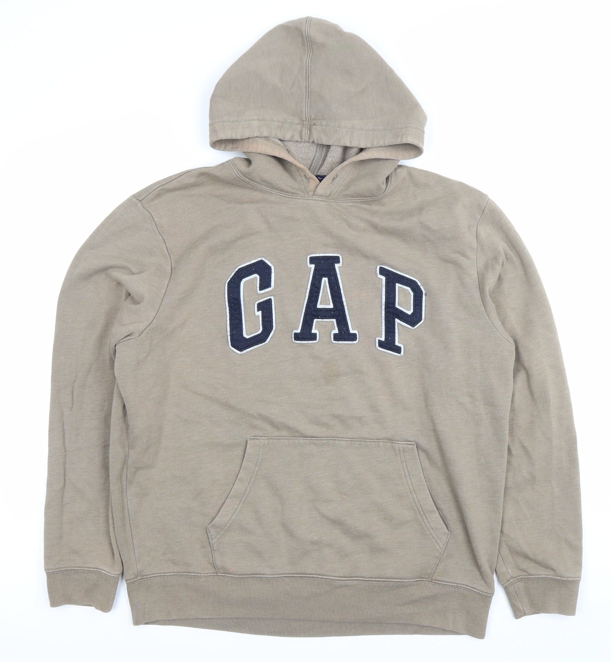 GAP Men’s Beige Pullover Hoodie L Logo Fleece Cotton Blend