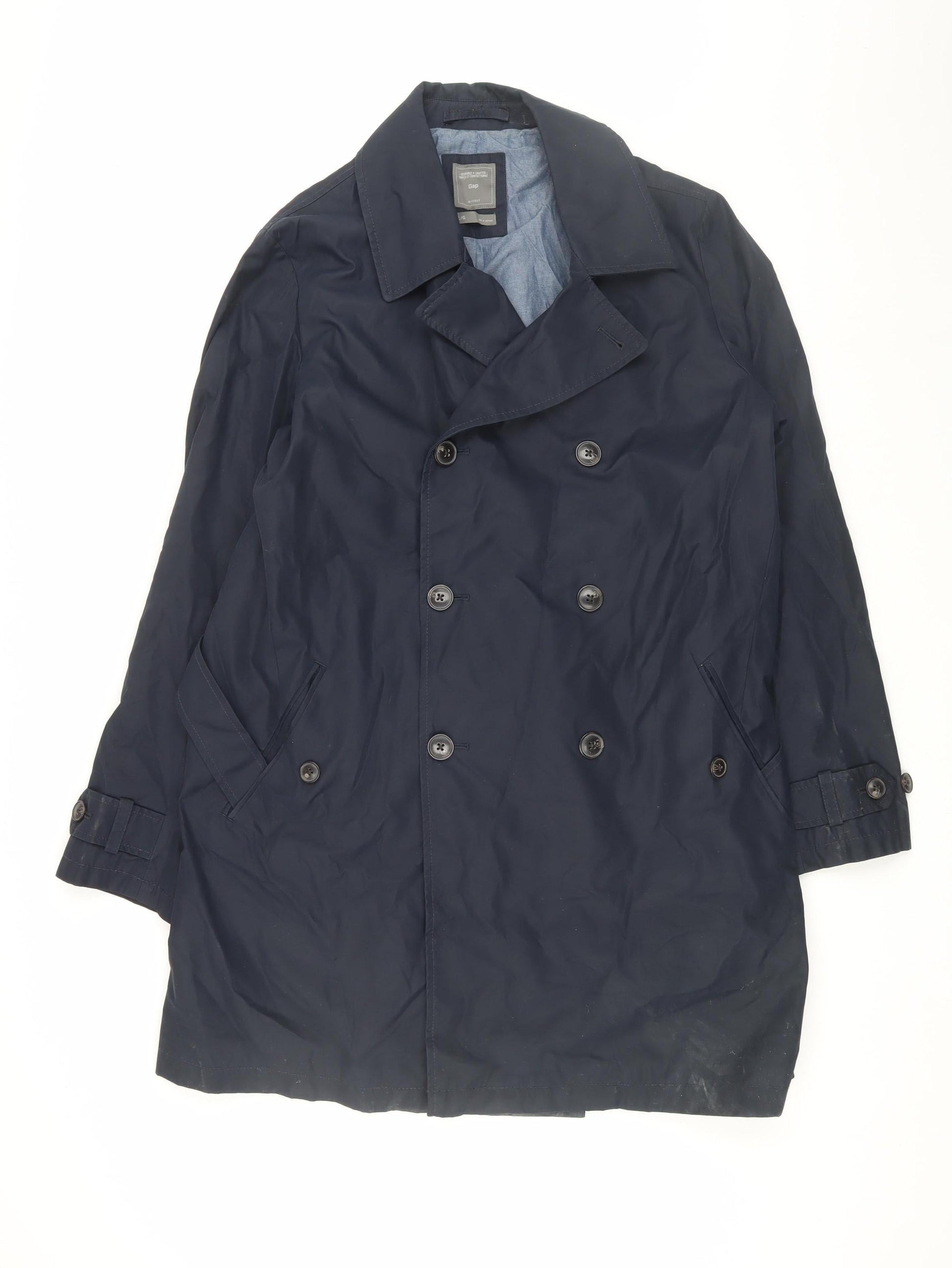Gap Men's Blue Trench Coat, Size L, Casual Cotton Blend
