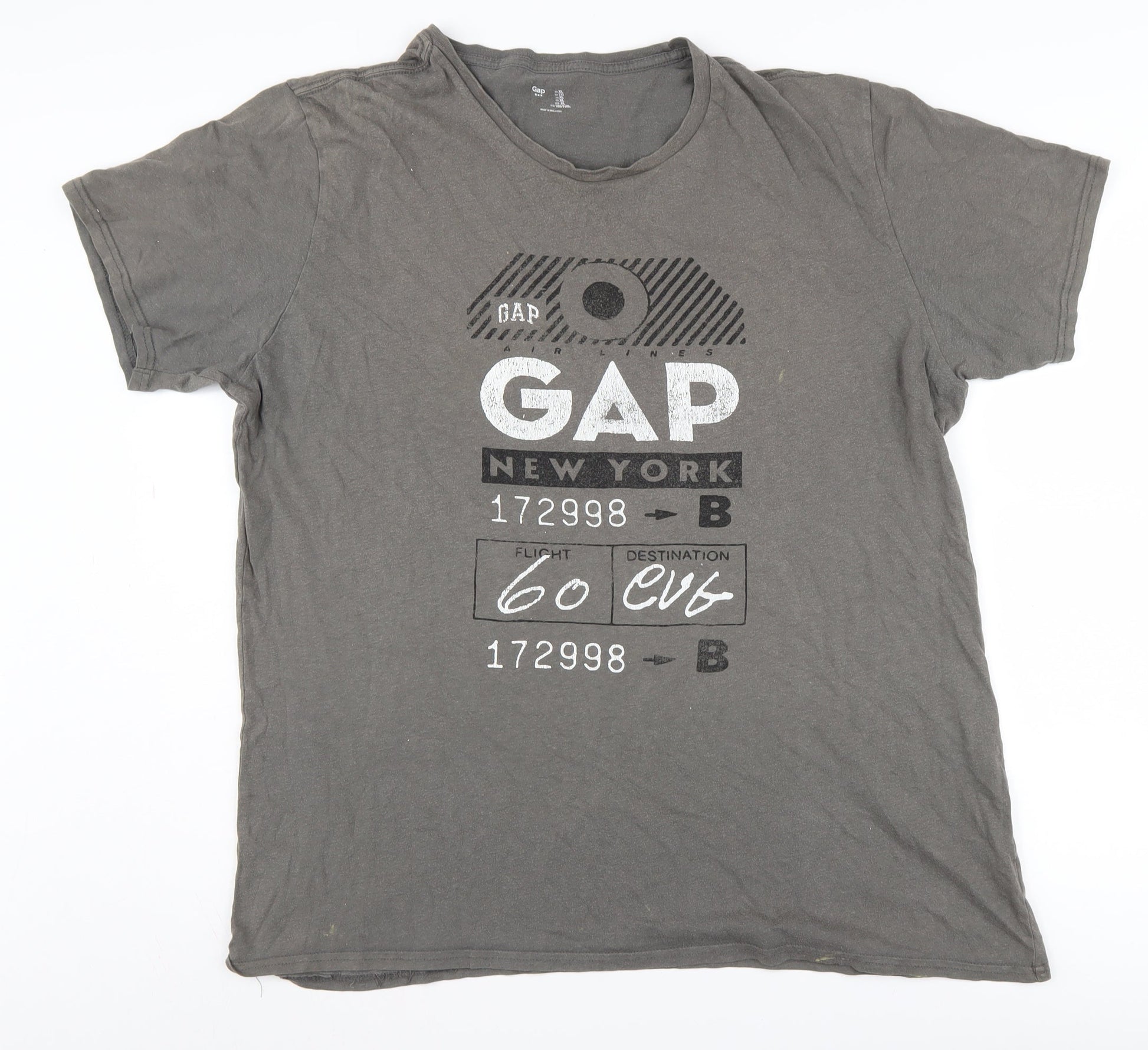 Gap Men's Grey Graphic Print T-Shirt, XL, Cotton