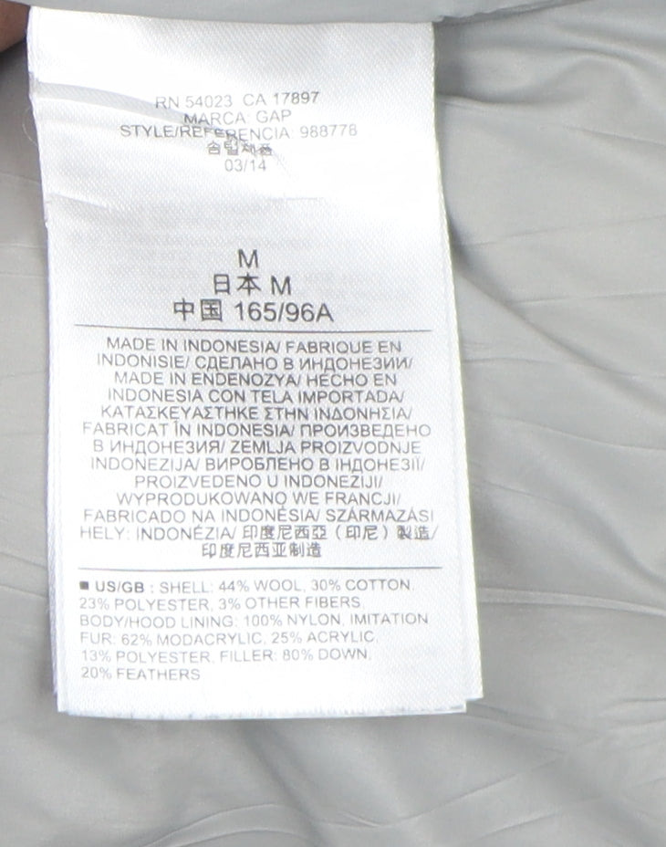Gap Men's Grey Hooded Puffer Jacket, Size M, Winter