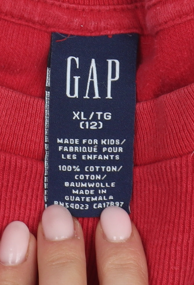 GAP Unisex Red Cotton Long Sleeve T-Shirt Size 12