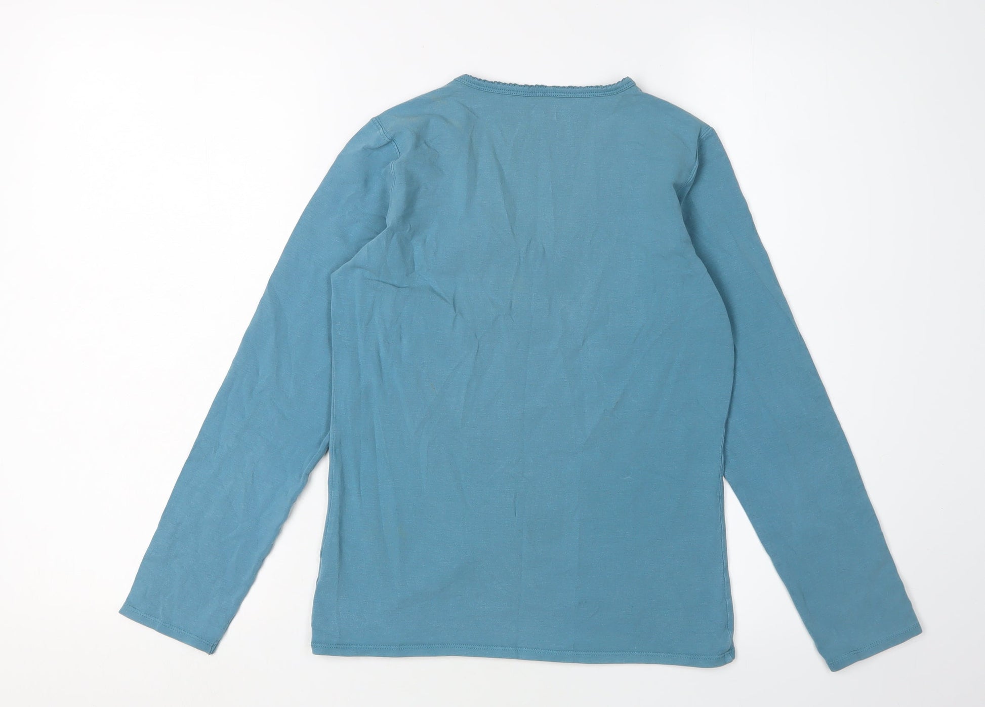 GAP Women’s Blue V-Neck Cotton Blend Long Sleeve T-Shirt