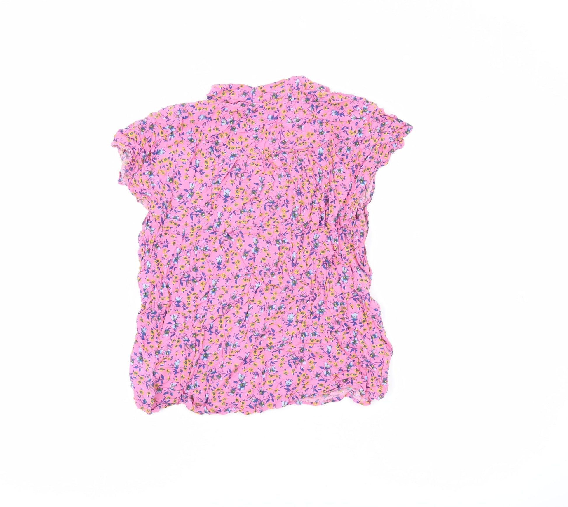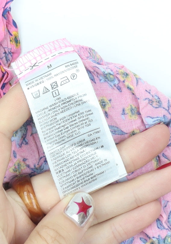 GAP Women’s Pink Floral V-Neck Tunic Blouse - Size M, Short Sleeve