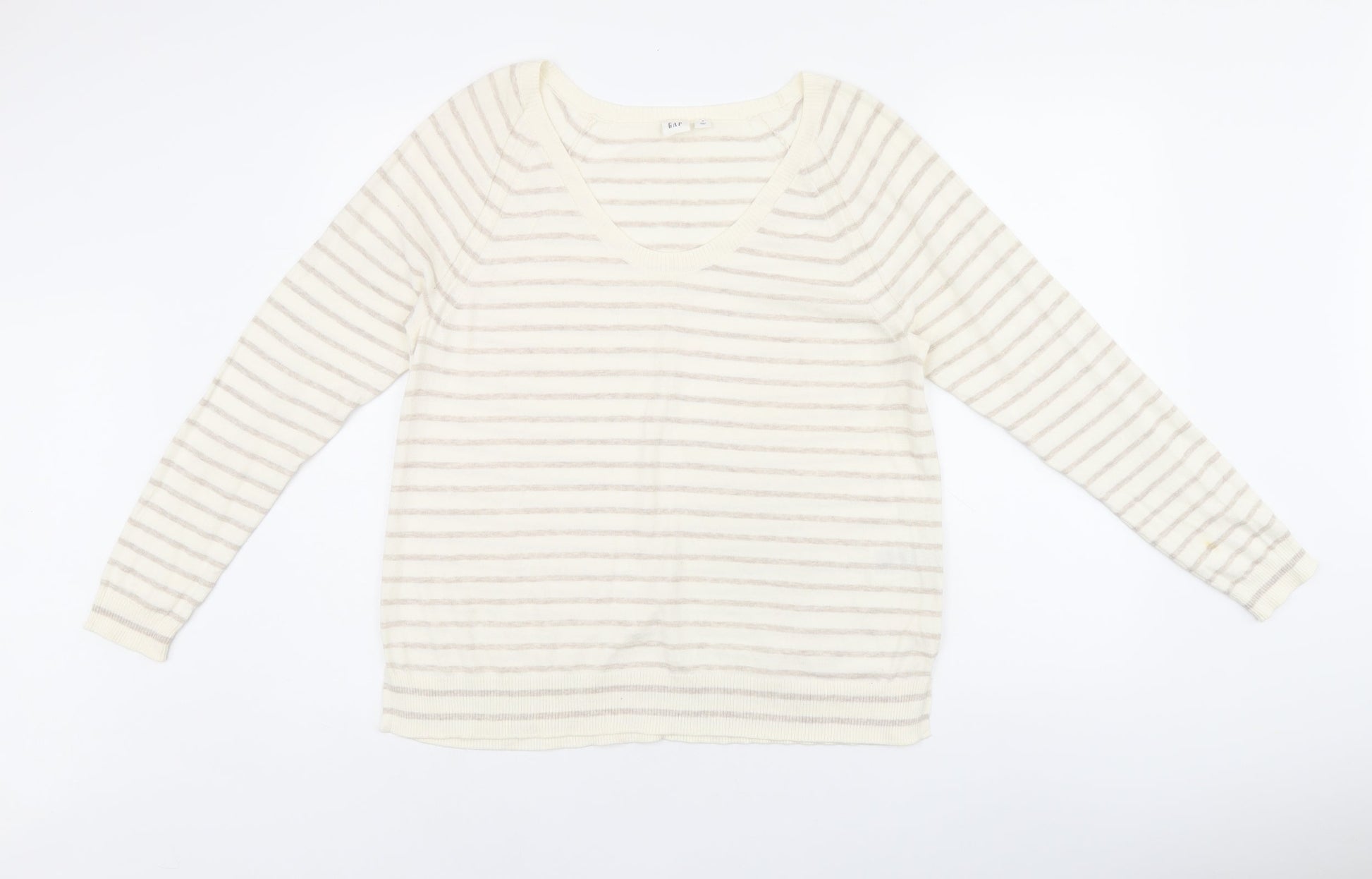 Gap Womens Beige Striped Cotton Jersey T-Shirt Size M Scoop Neck