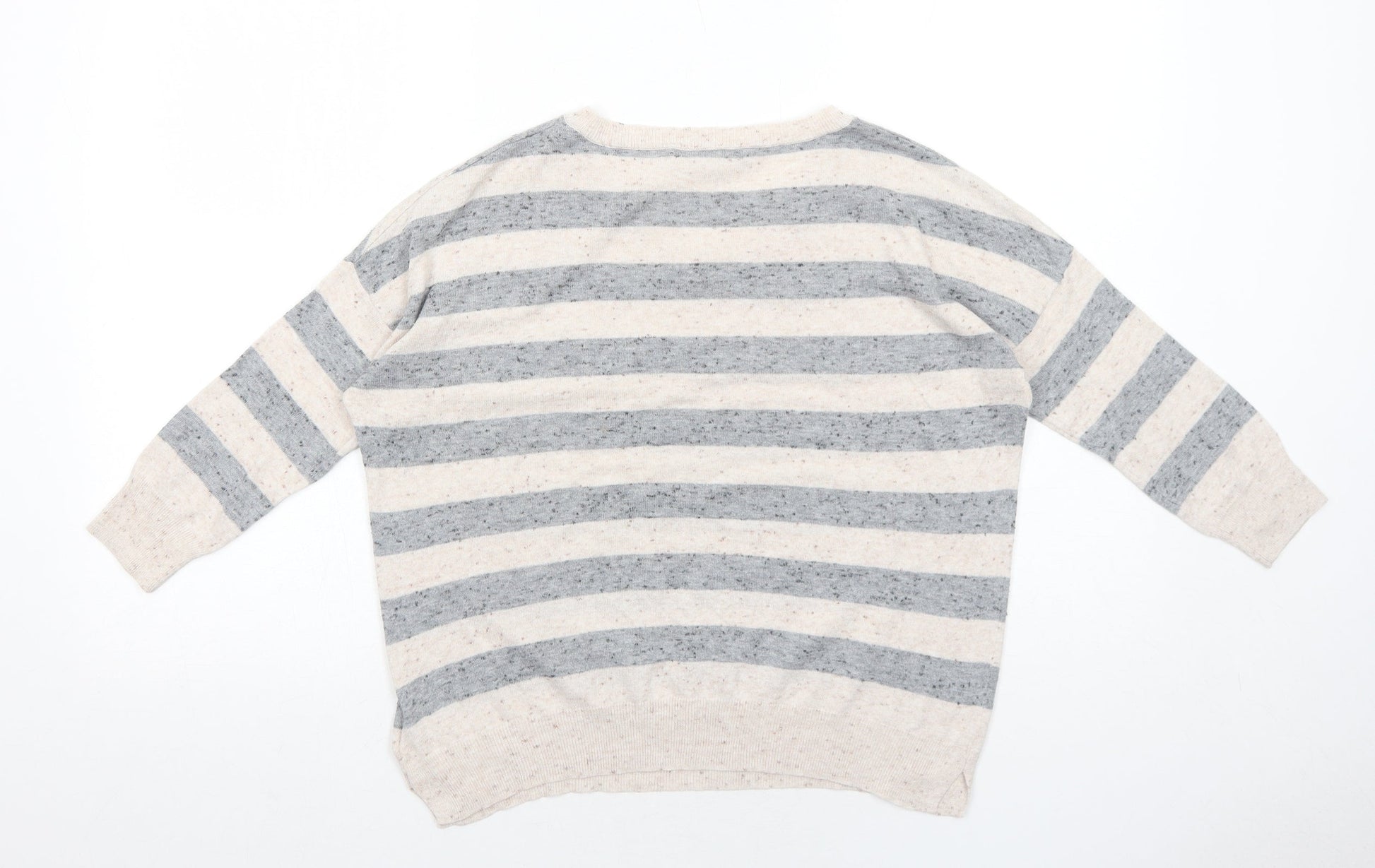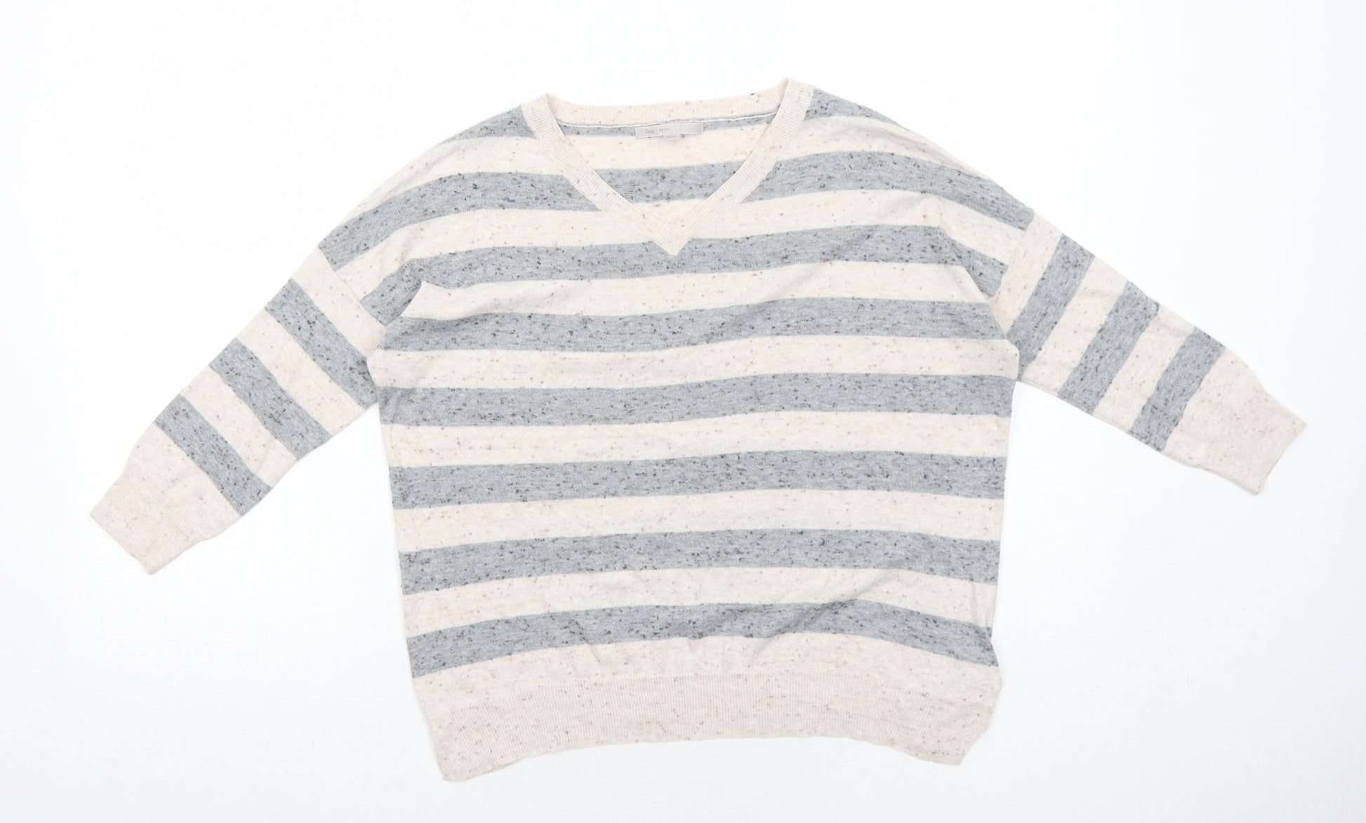 Gap Womens Beige V-Neck Striped Cotton Pullover Jumper Size XS