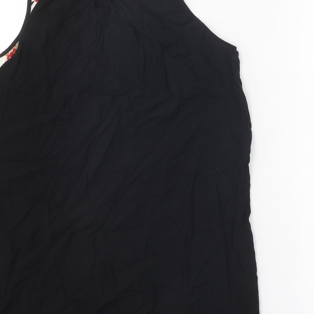 Gap Womens Black Floral Polyester Basic Tank Size M V-Neck