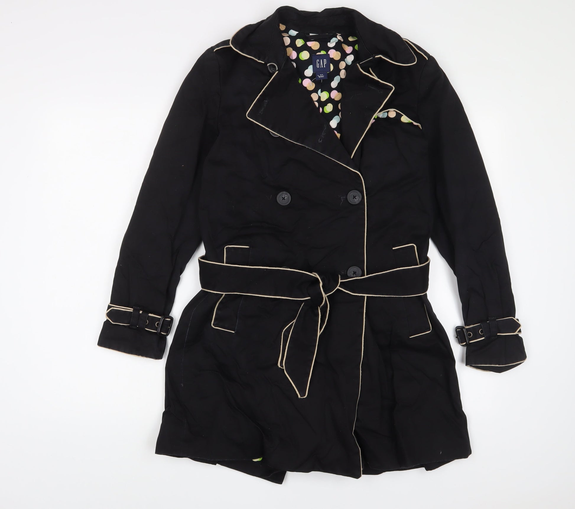 Gap Womens Black Overcoat Jacket Size S Button - Belted