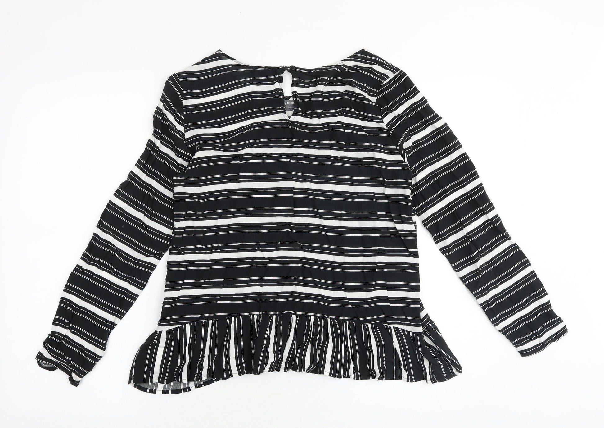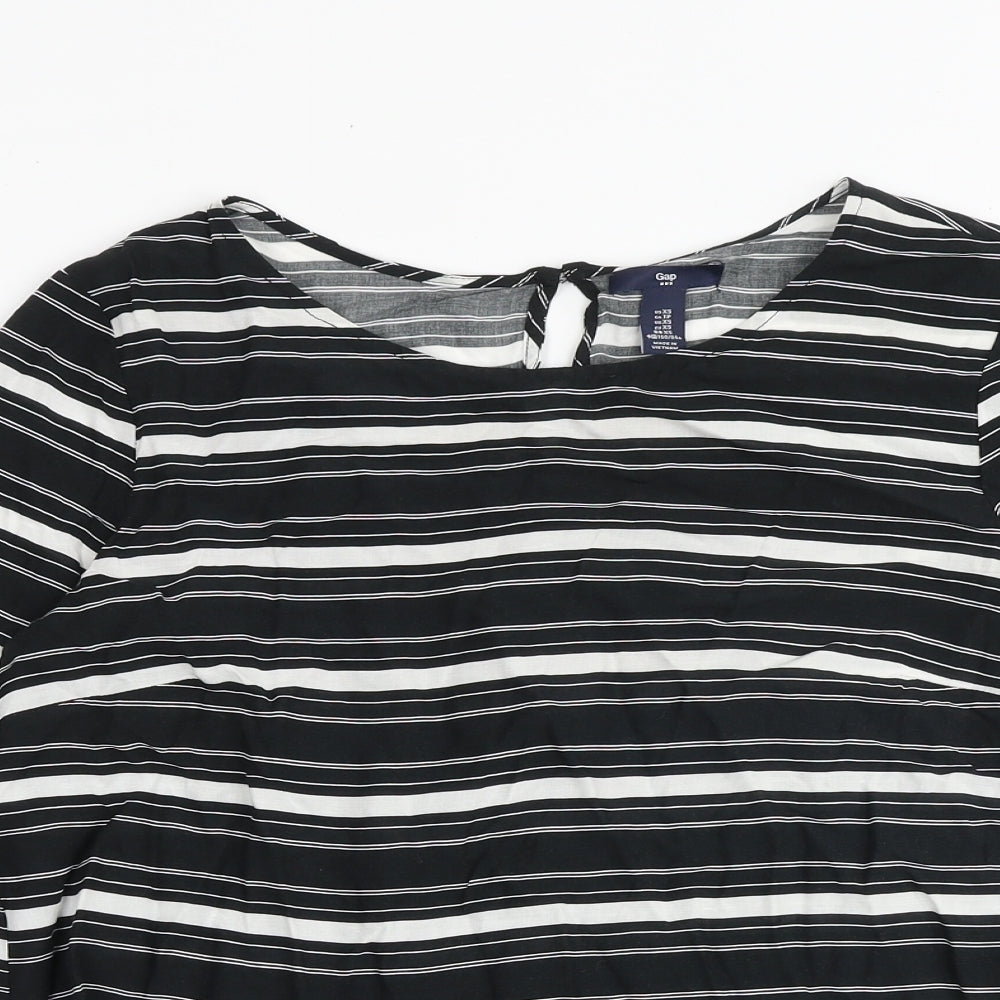 Gap Womens Black Striped Viscose Basic Blouse Size XS Round Neck