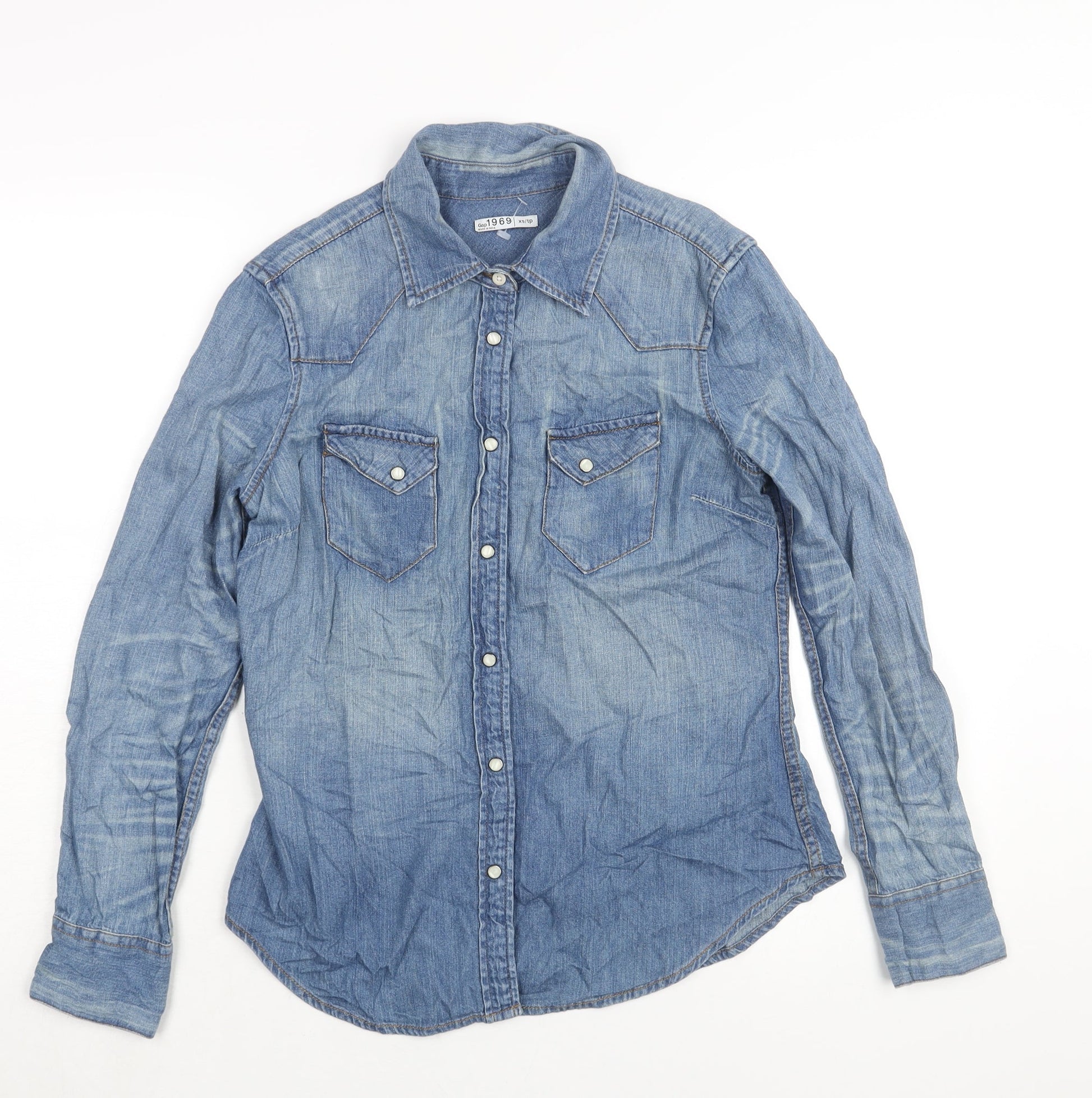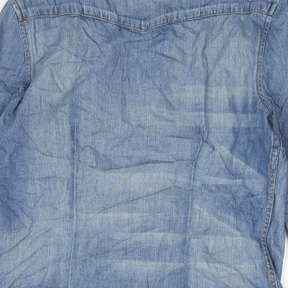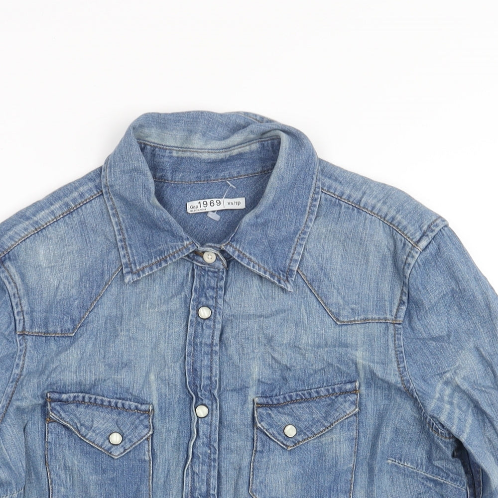 Gap Womens Blue Cotton Basic Button-Up Size XS Collared - Distressed