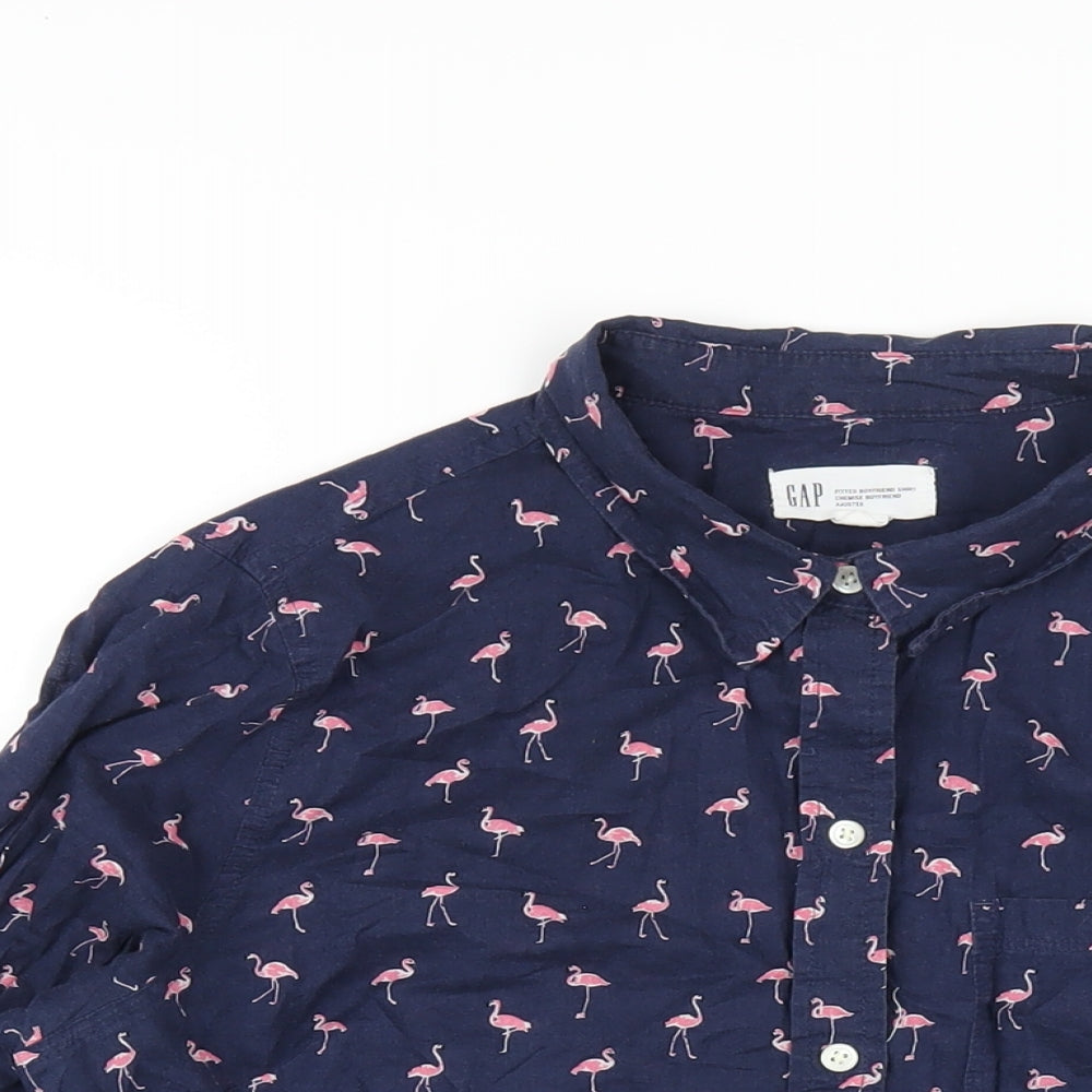 Gap Womens Blue Geometric Cotton Basic Button-Up Size M Collared
