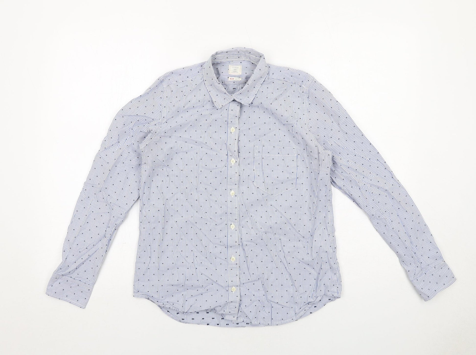 Gap Womens Blue Geometric Cotton Basic Button-Up Size XS Collared