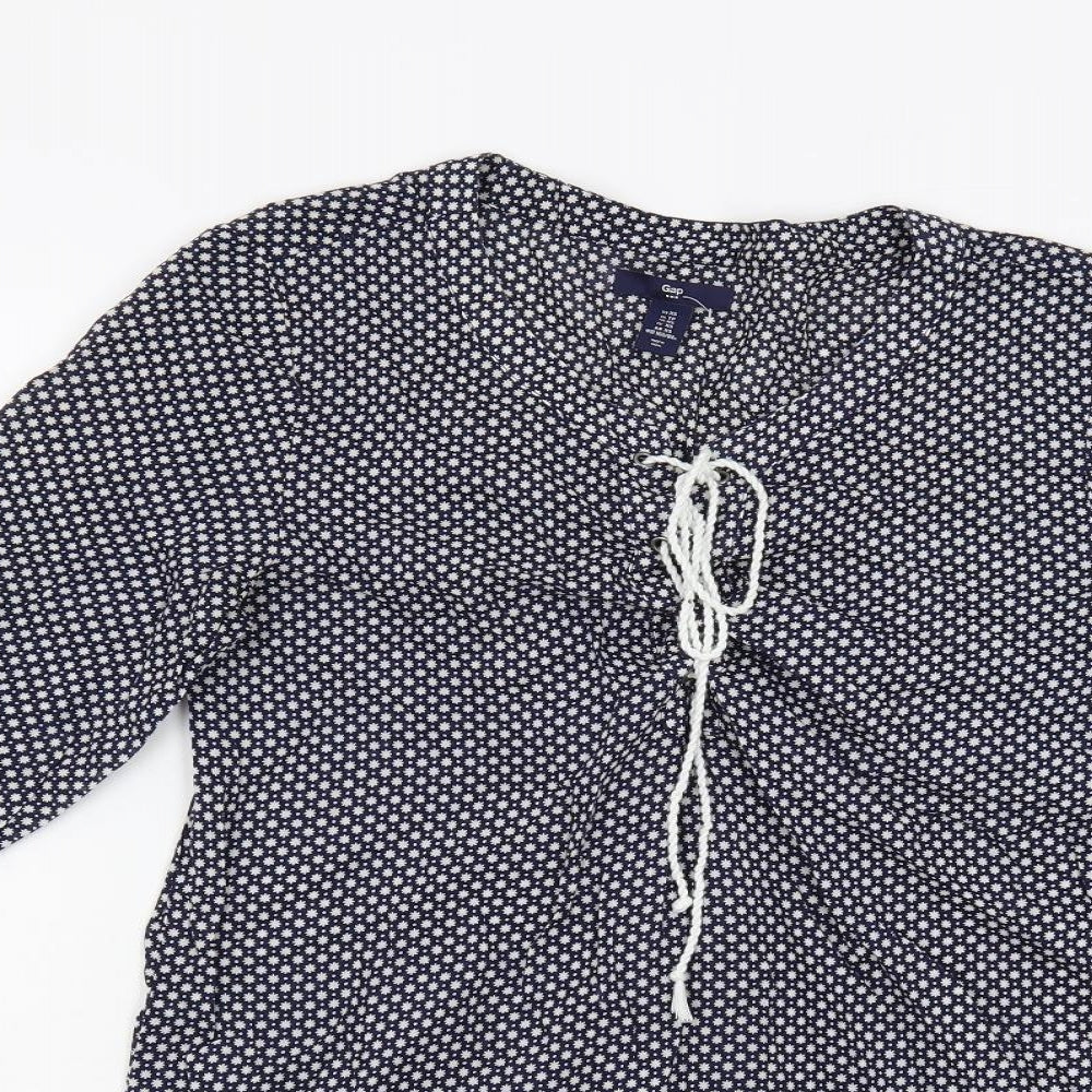 Gap Womens Blue Geometric Cotton Tunic Blouse Size XS V-Neck