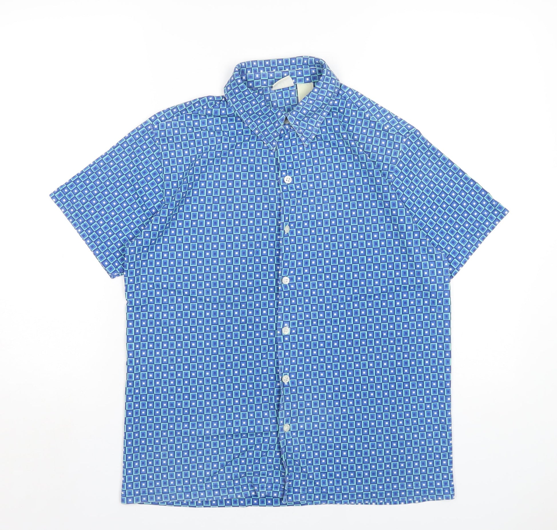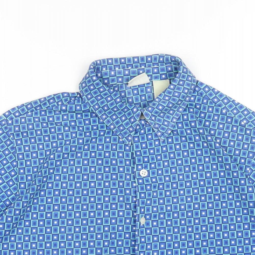 Gap Womens Blue Geometric Nylon Basic Button-Up Size S Collared