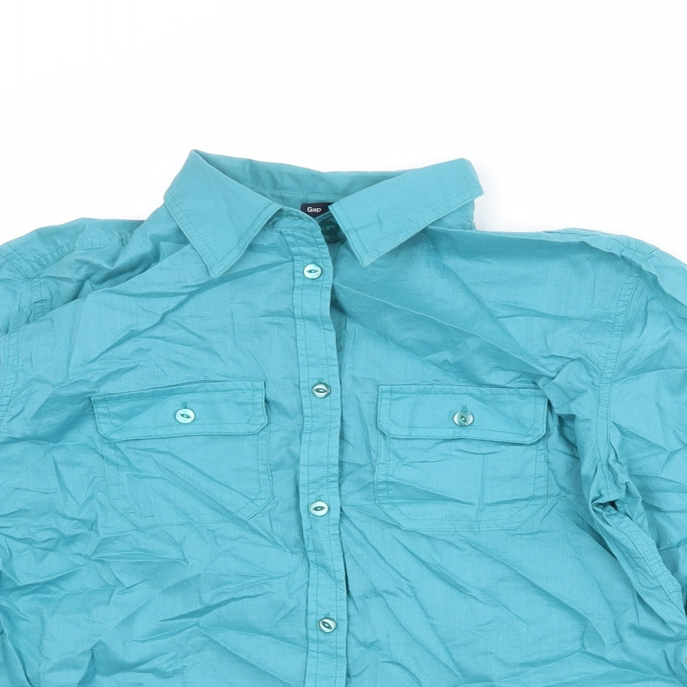 Gap Womens Blue Polyester Basic Button-Up Size S Collared