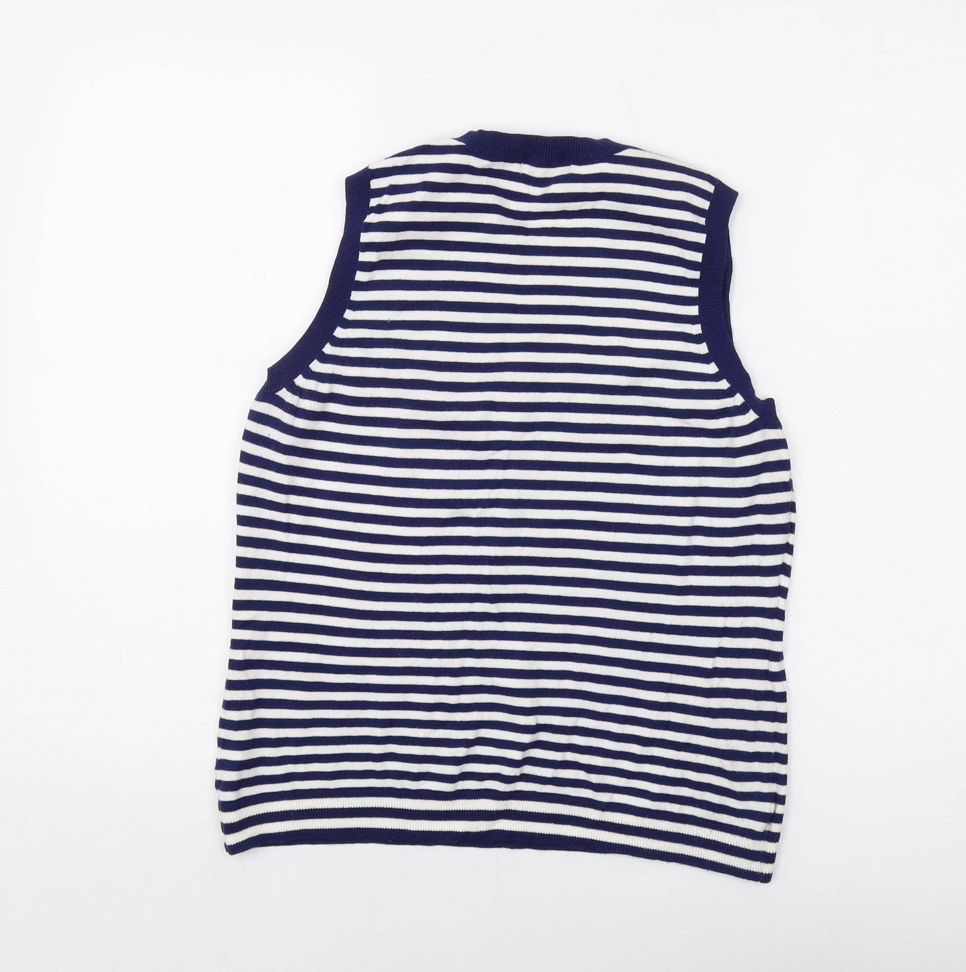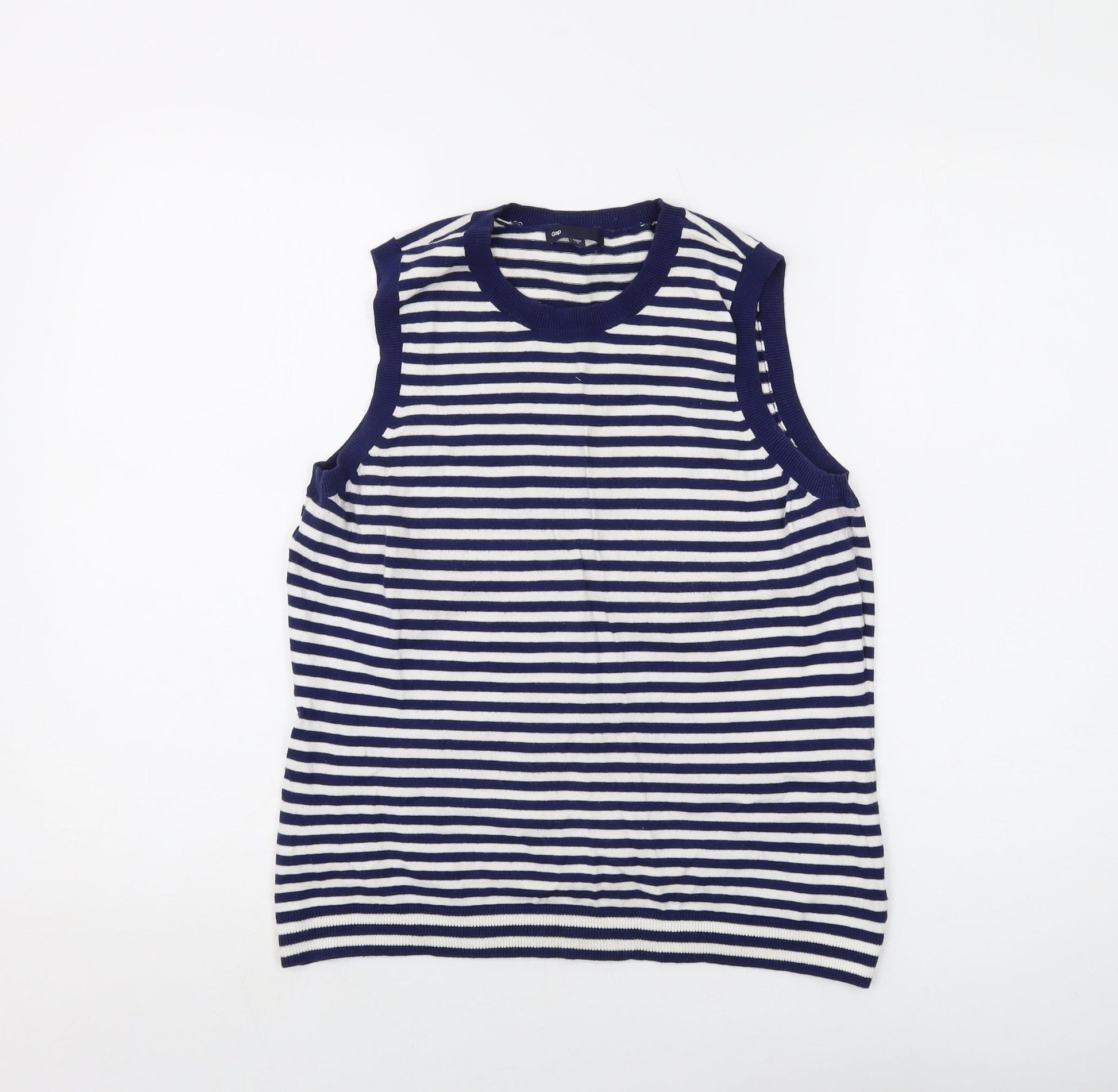 Gap Womens Blue Striped Cotton Basic Tank Size L Crew Neck