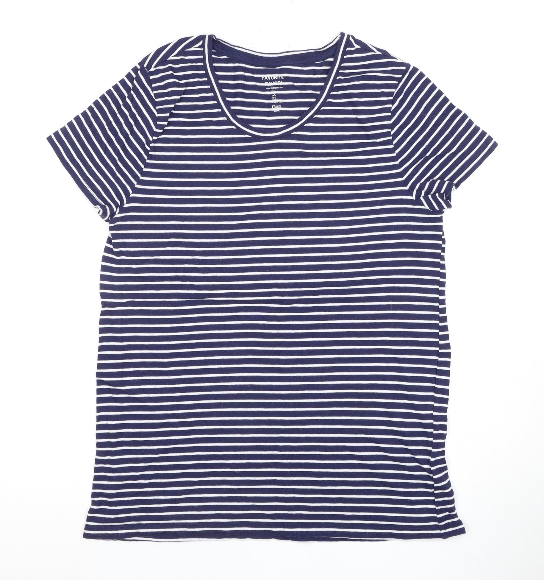 Gap Women's Blue Striped T-Shirt, L, Casual Classic