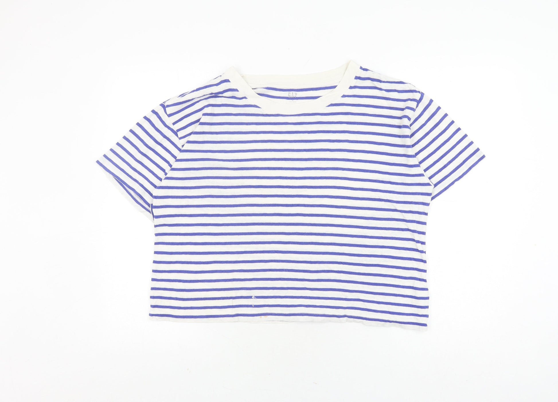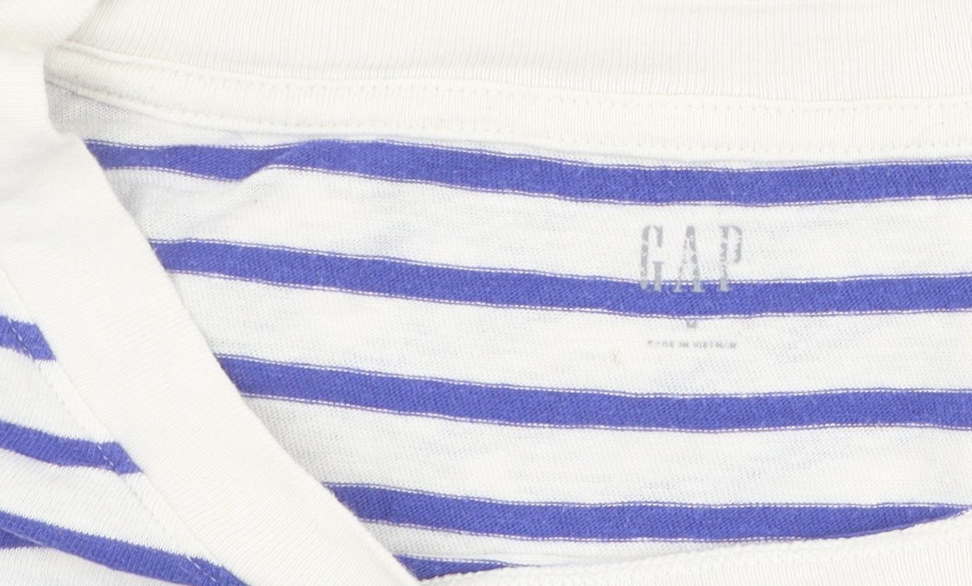 Gap Women's Blue Striped T-Shirt Medium