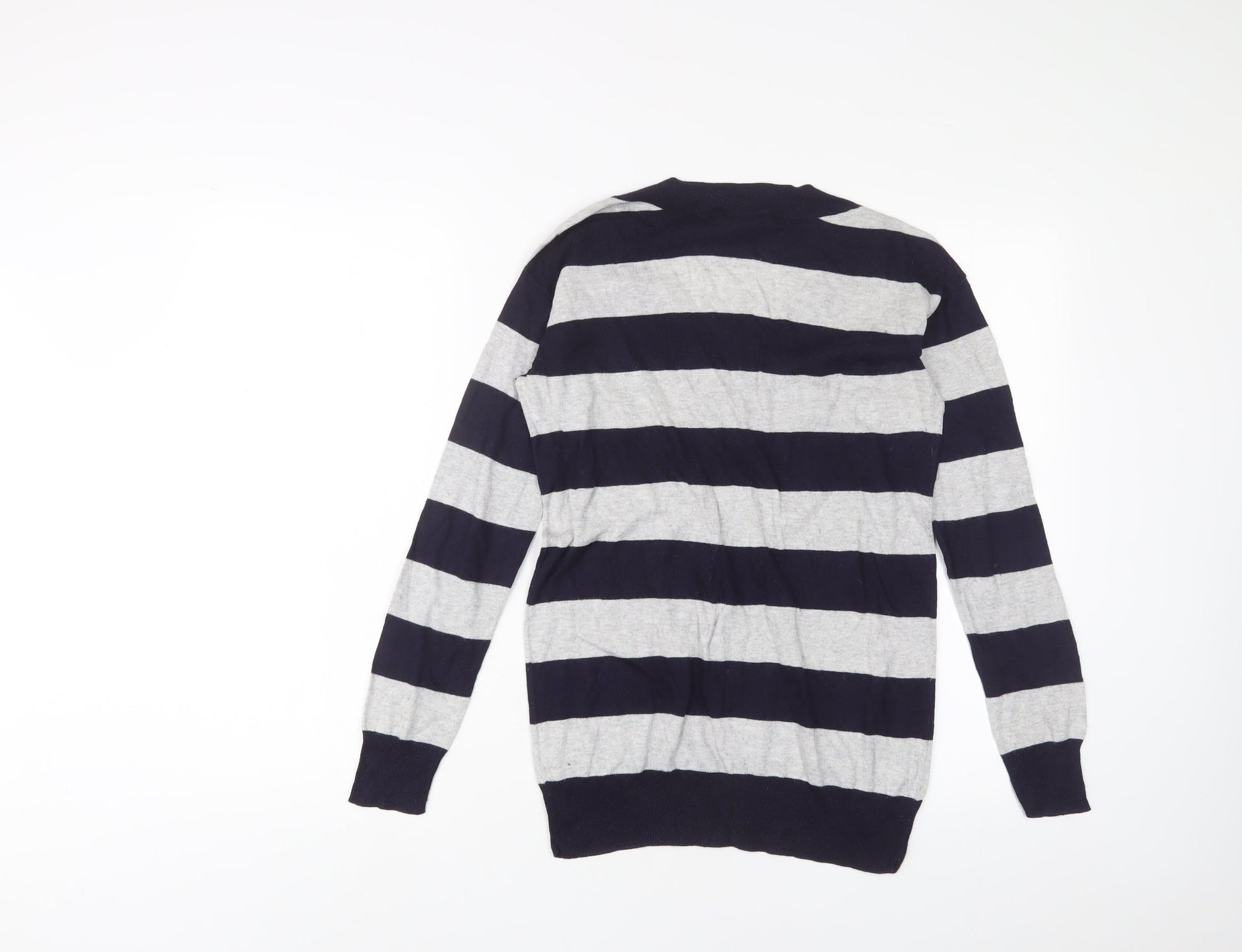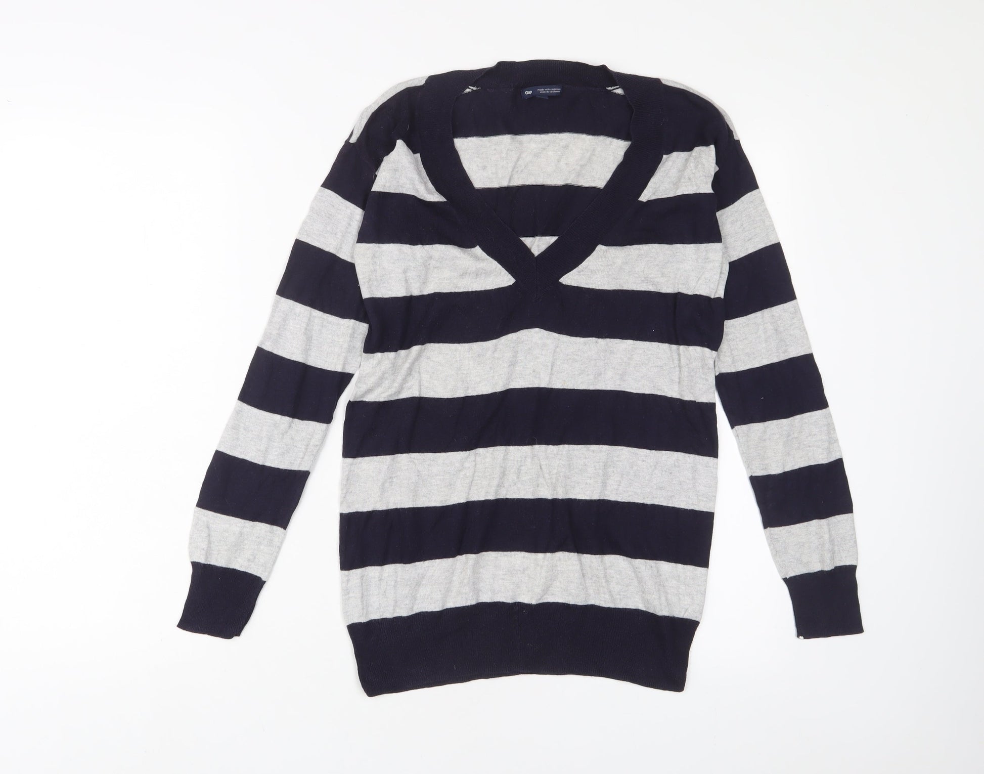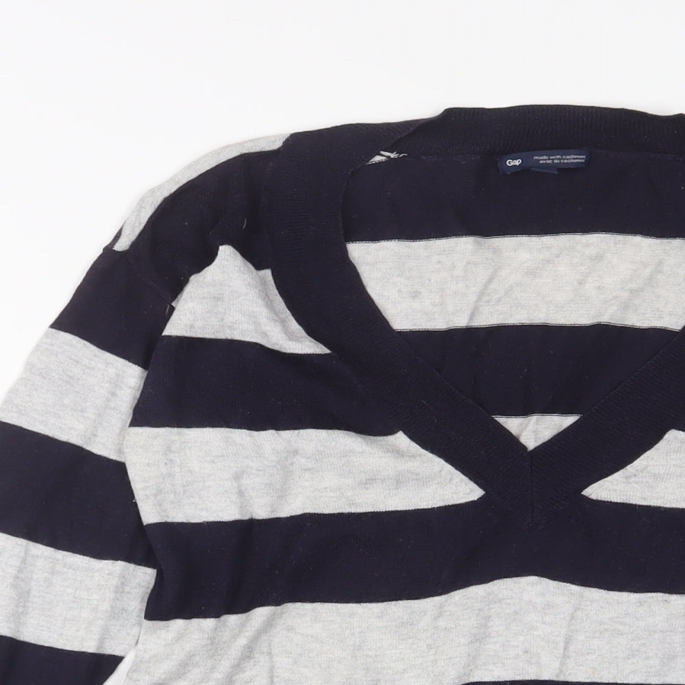 Gap Womens Blue V-Neck Striped Cotton Pullover Jumper Size XS