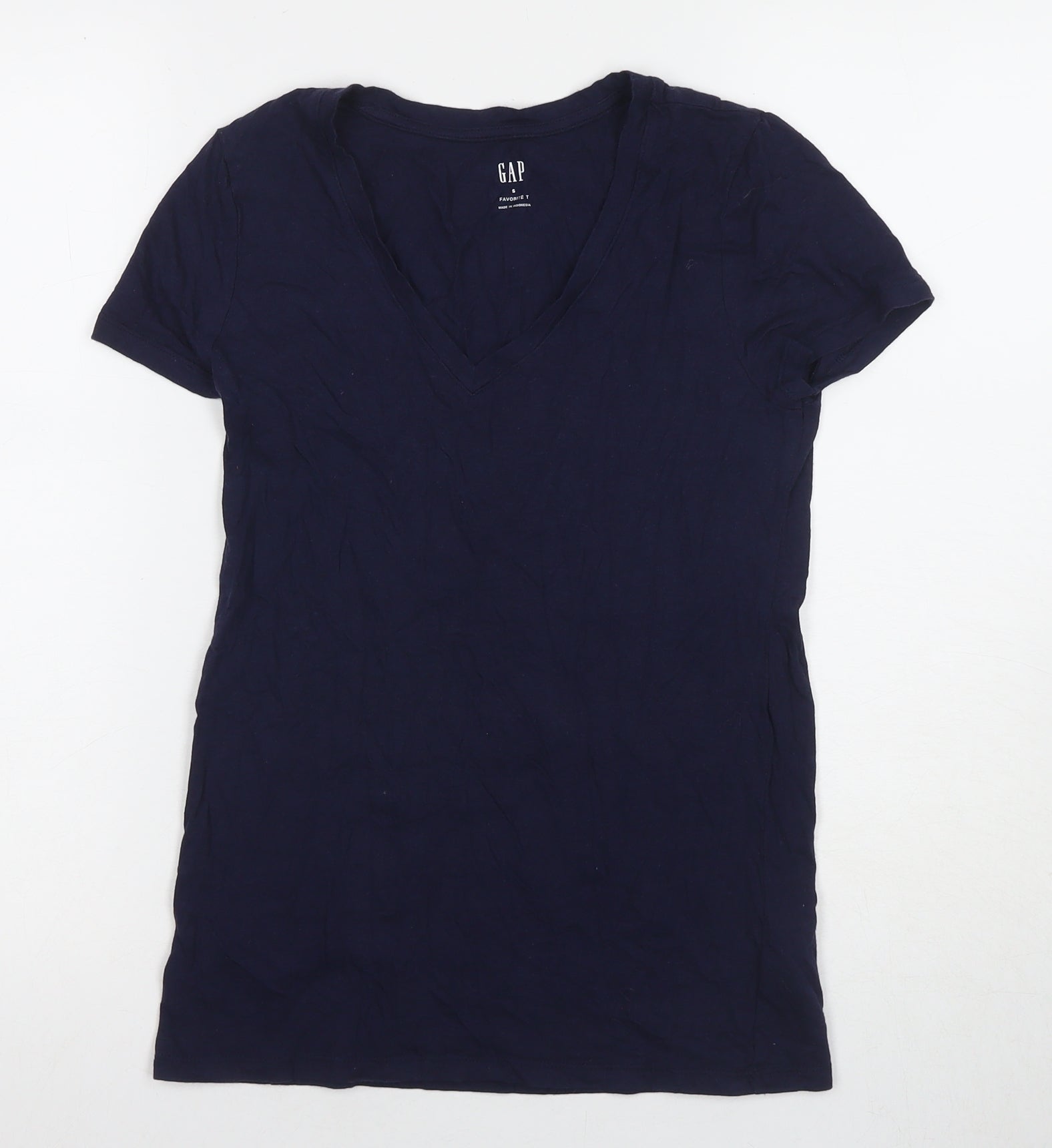 Gap Women's Blue V-Neck T-Shirt in Size S