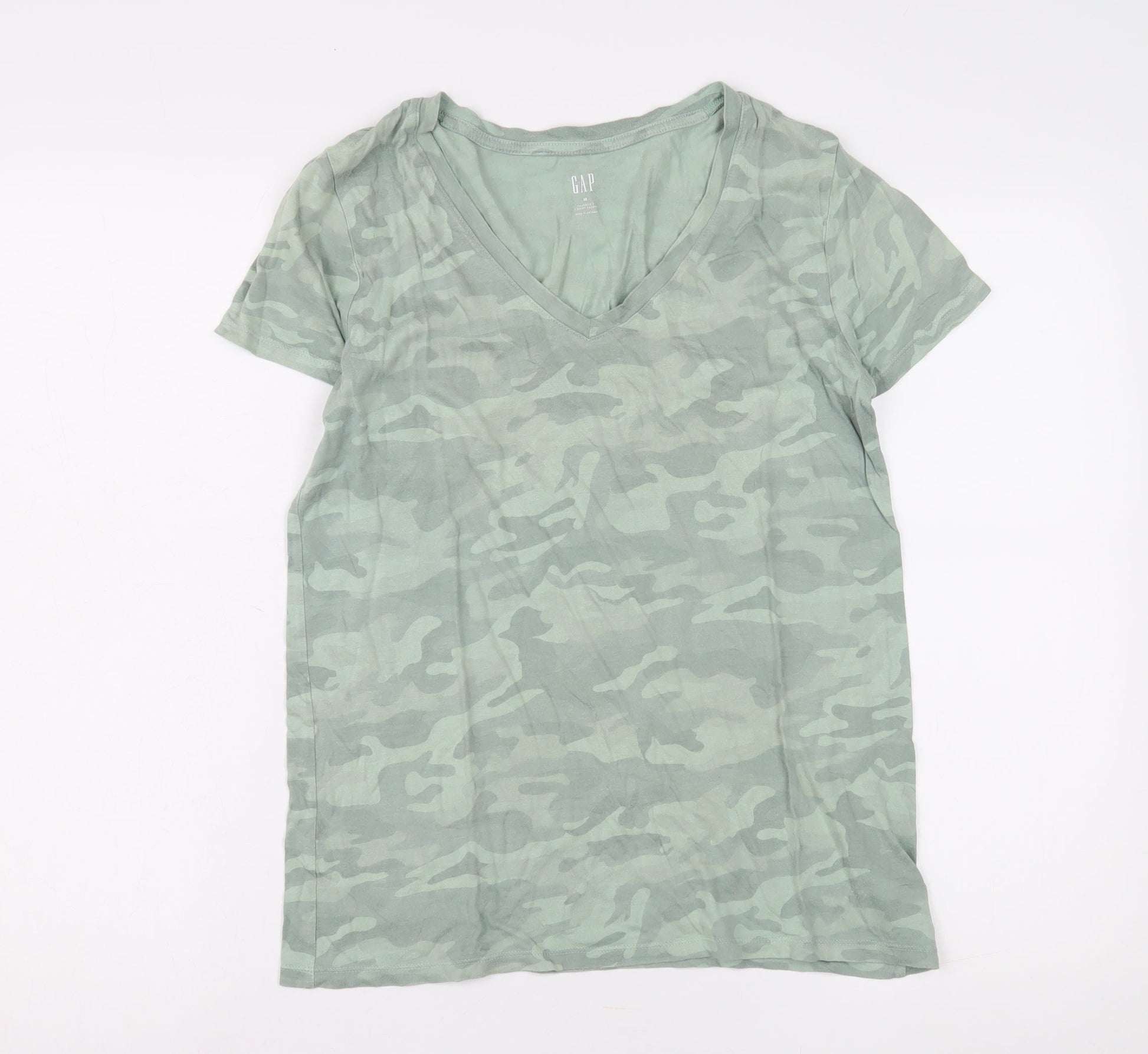 Gap Women's Green Camouflage T-Shirt V-Neck Medium