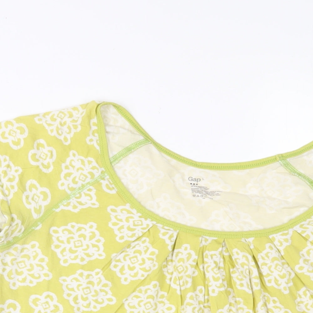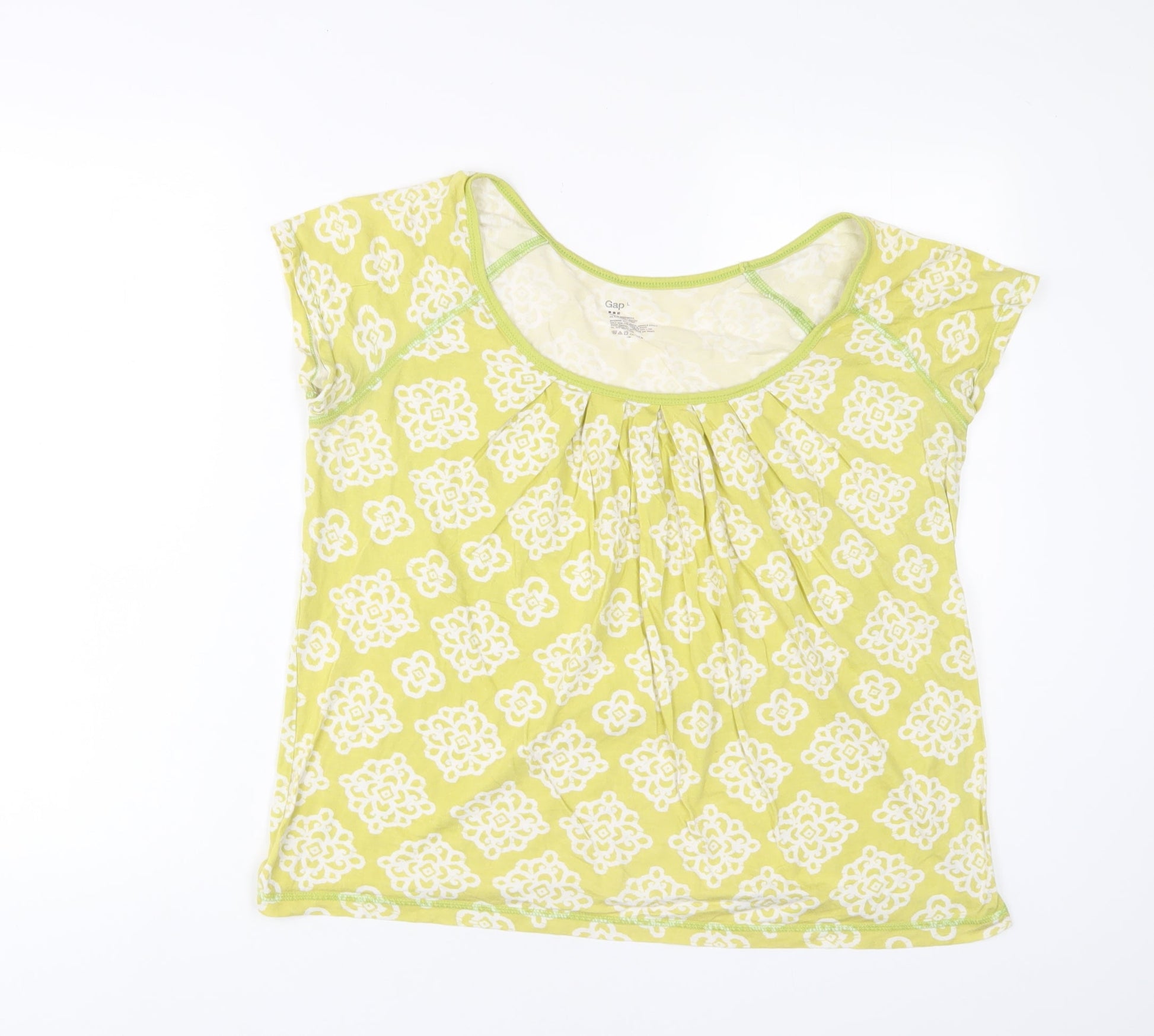 Gap Womens Green Geometric Cotton Basic T-Shirt Size L Scoop Neck - Pleated