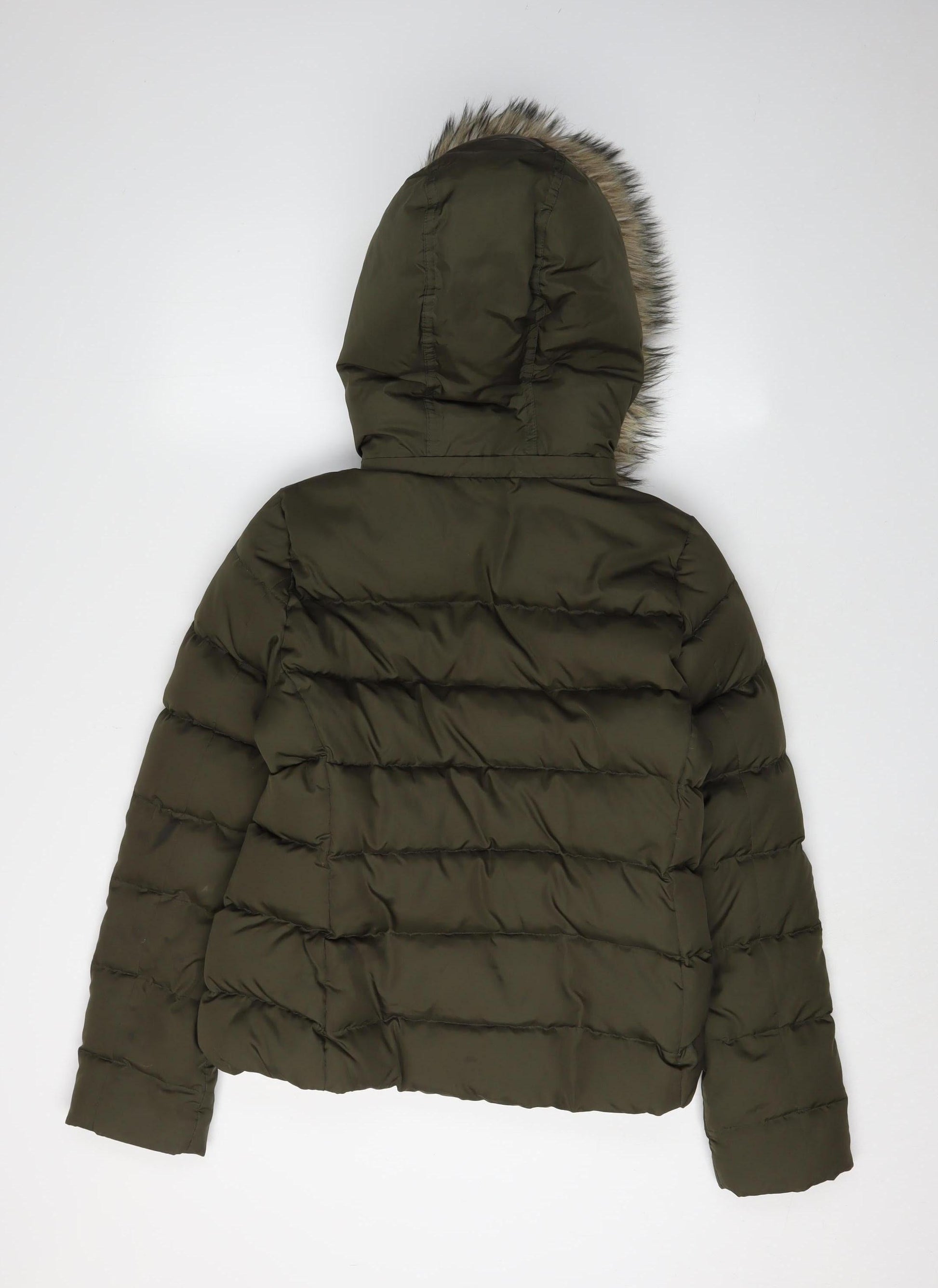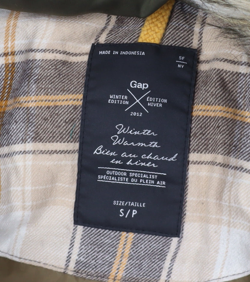 Gap Women's Green Puffer Jacket S - Winter Hooded Fur Trim