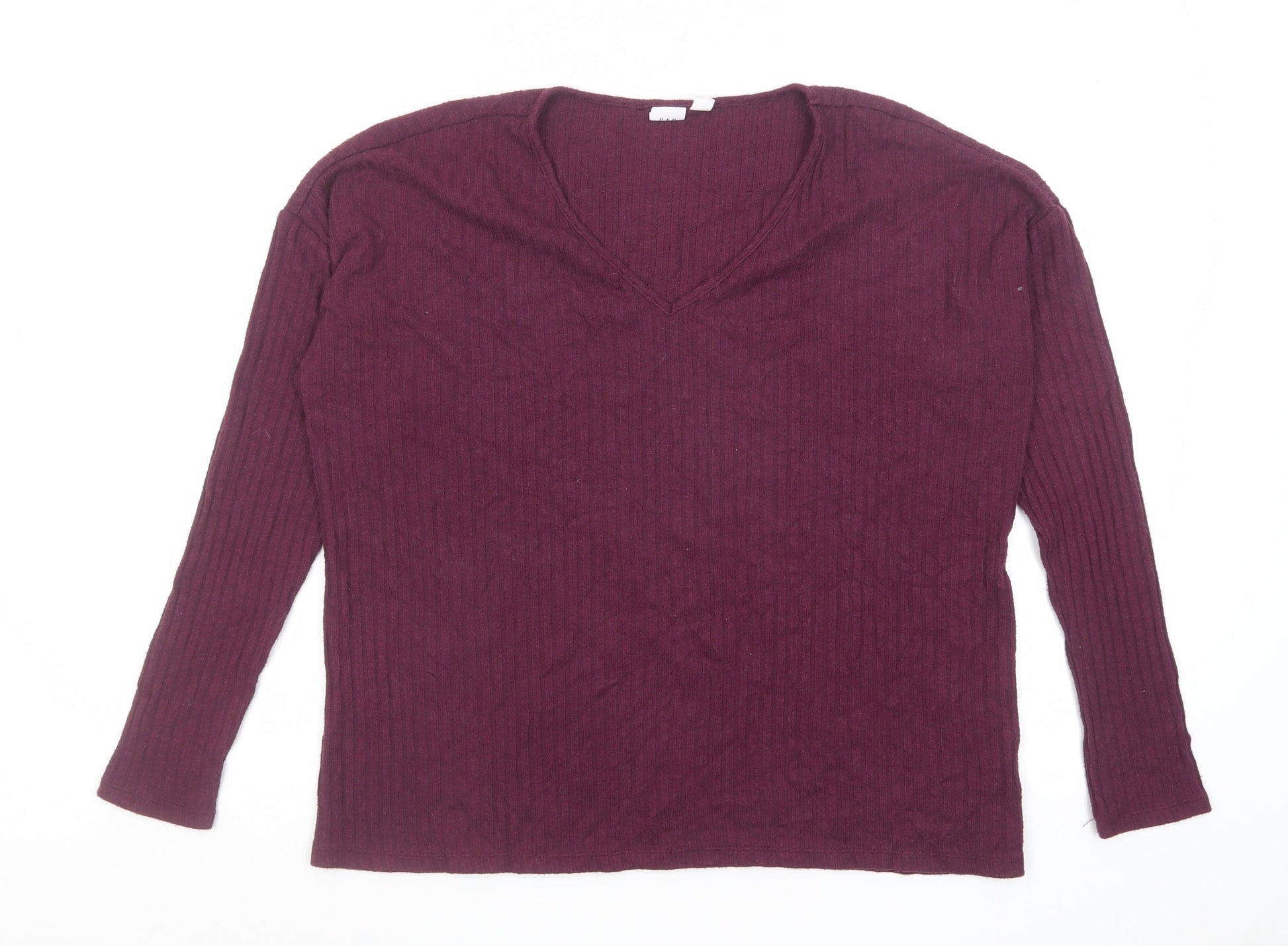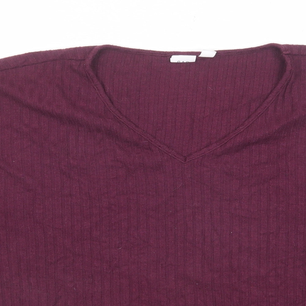 Gap Womens Purple V-Neck Polyester Pullover Jumper Size S