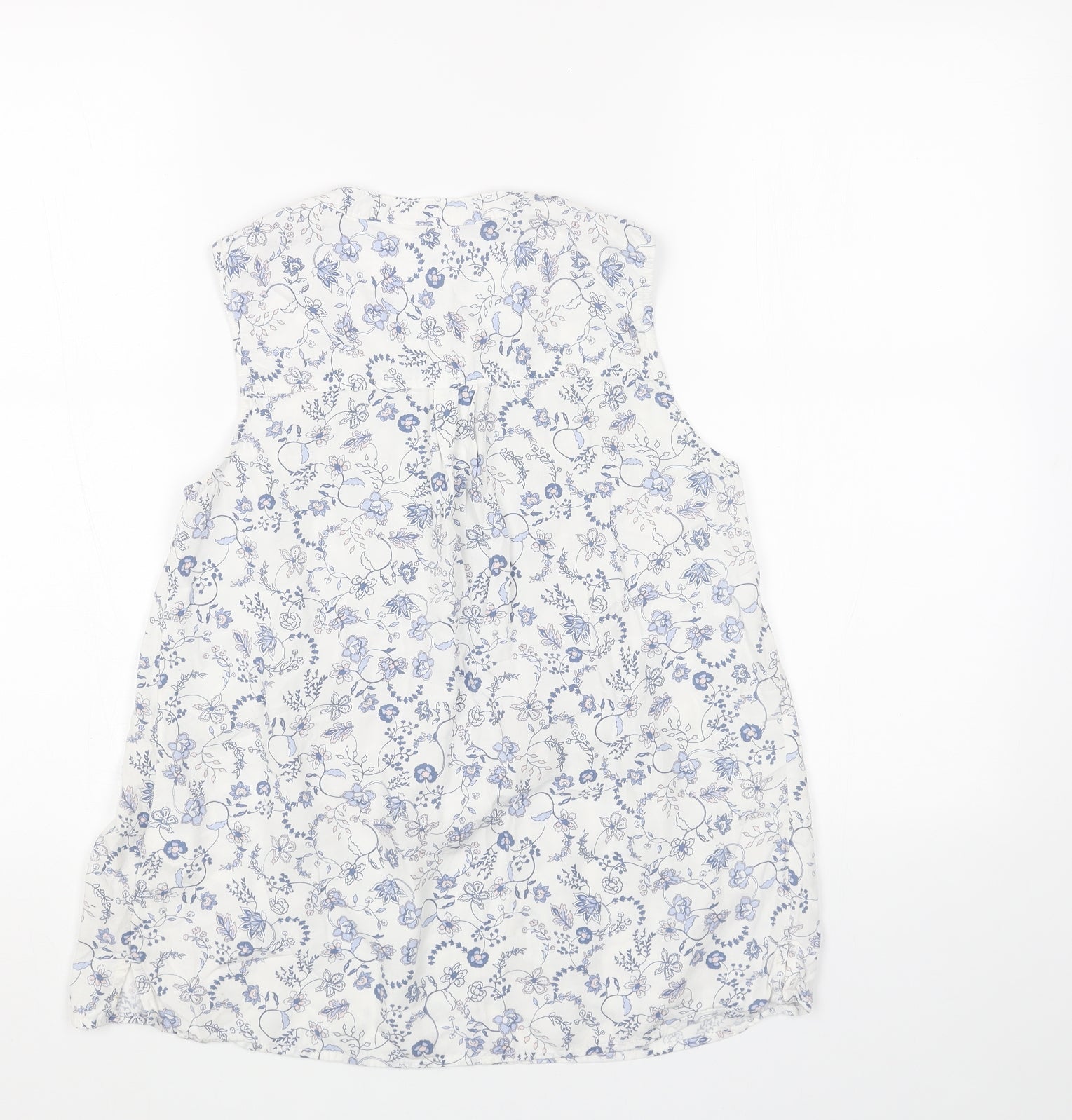 Gap Womens White Floral Viscose Basic Tank Size XS Scoop Neck