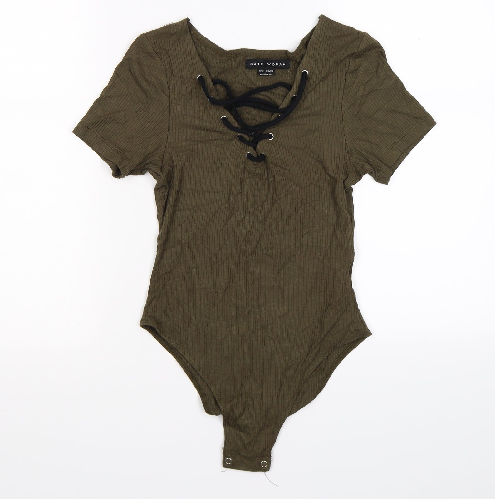 Gate Women Womens Green Striped Bodysuit One-Piece Size XS - lace neck