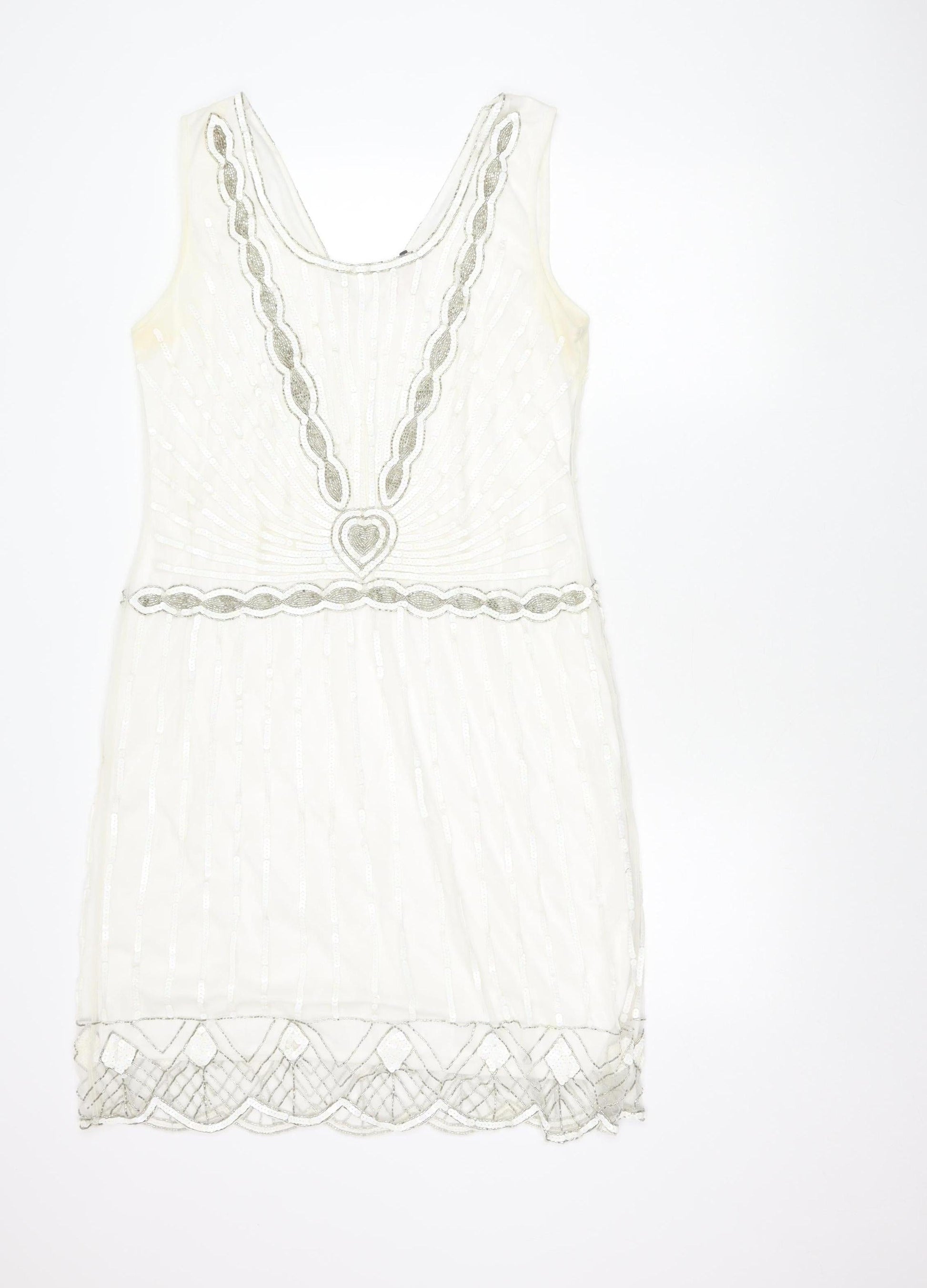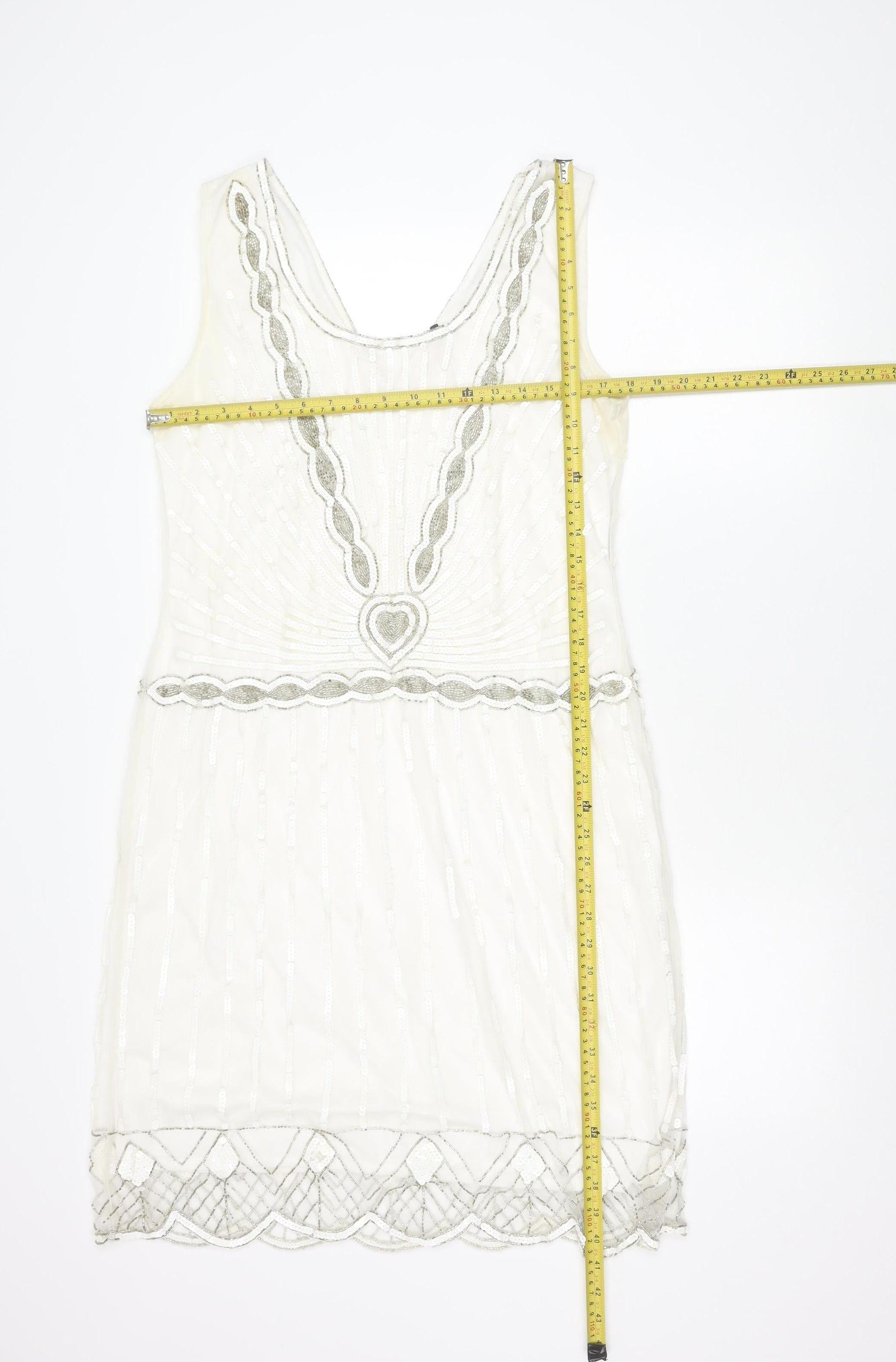 Gatsbylady London Women White Sequin Beaded 20s Sheath Dress Size 16