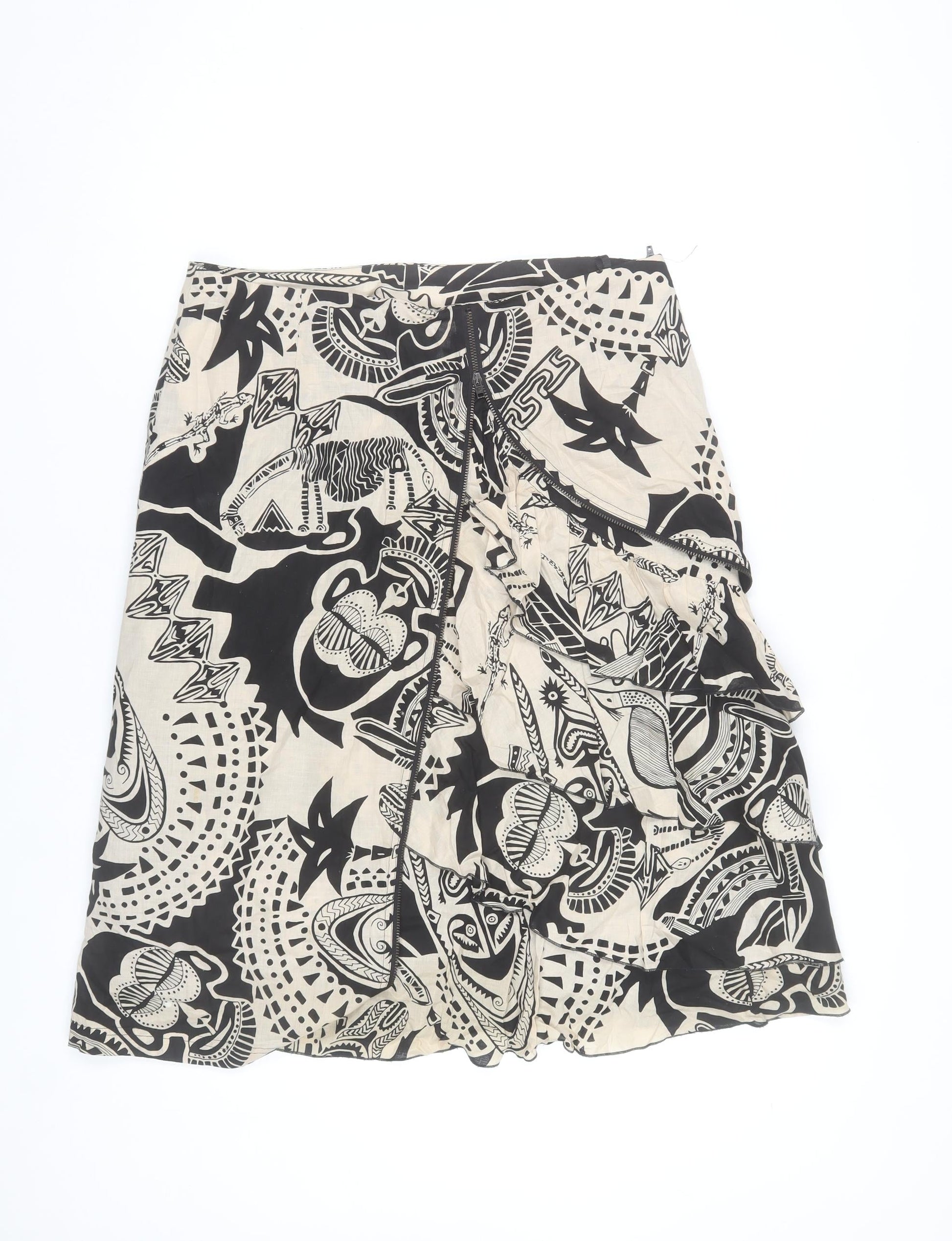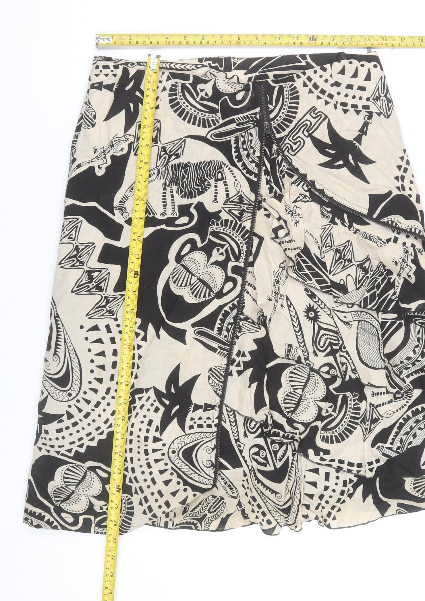 Gil Bret Women's Beige Tribal Wrap Cotton Knee Length Skirt Size 14