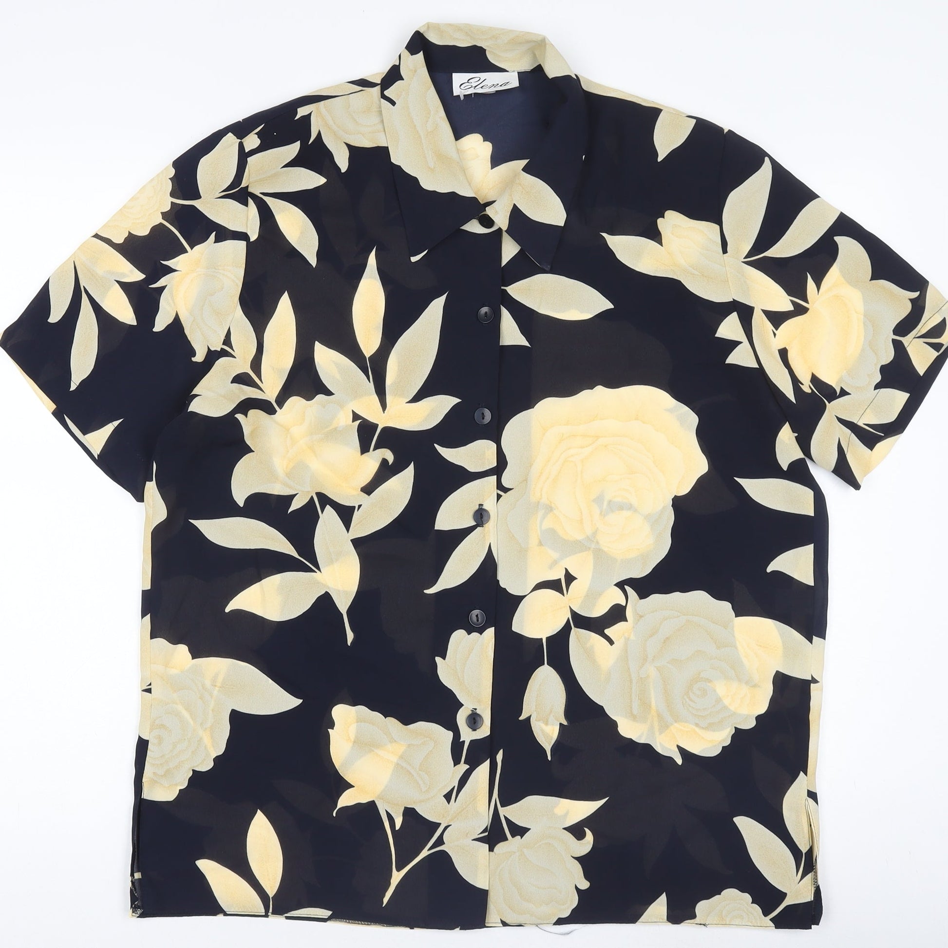 Givoni Women Black Floral Button-Up Short Sleeve Shirt M