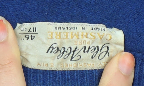 Glenross Men's Blue V-Neck Pure Cashmere Jumper Size L