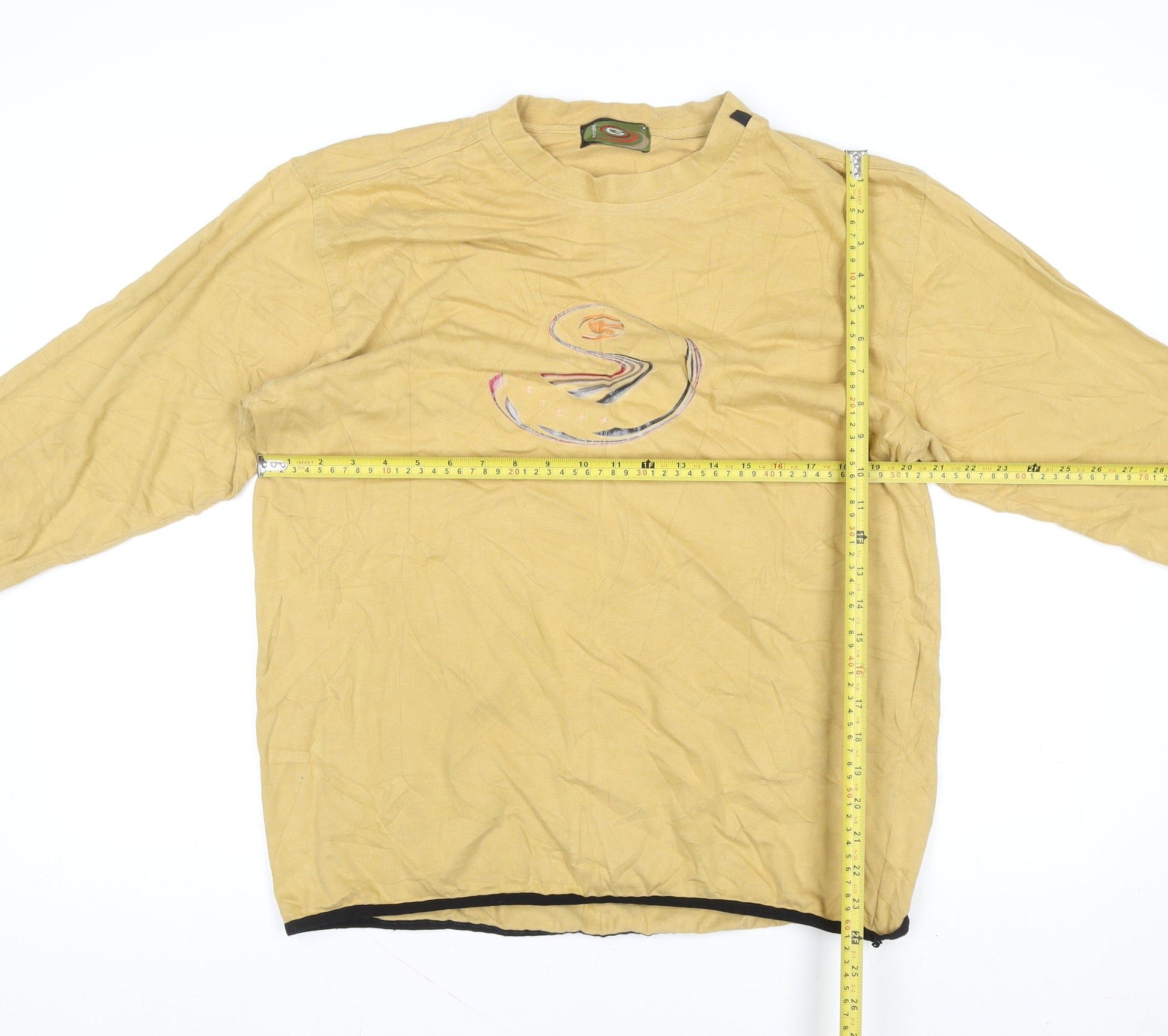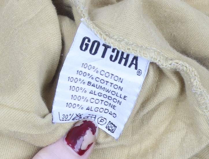 Gotcha Men Beige Cotton Long Sleeve Crew Neck Casual Top M
