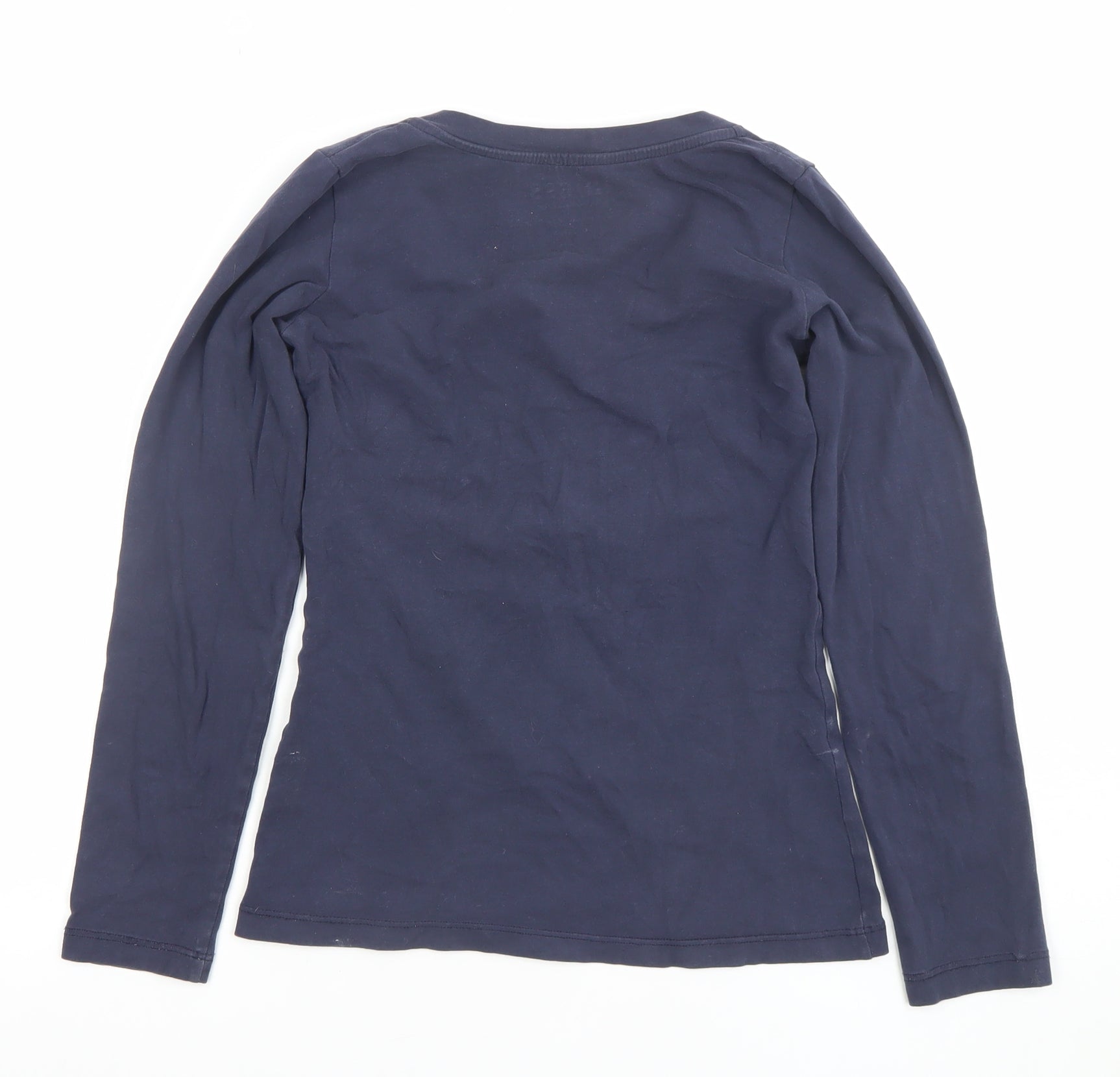 Guess Womens Blue Rhinestone V-Neck Long Sleeve Cotton T-Shirt Size S