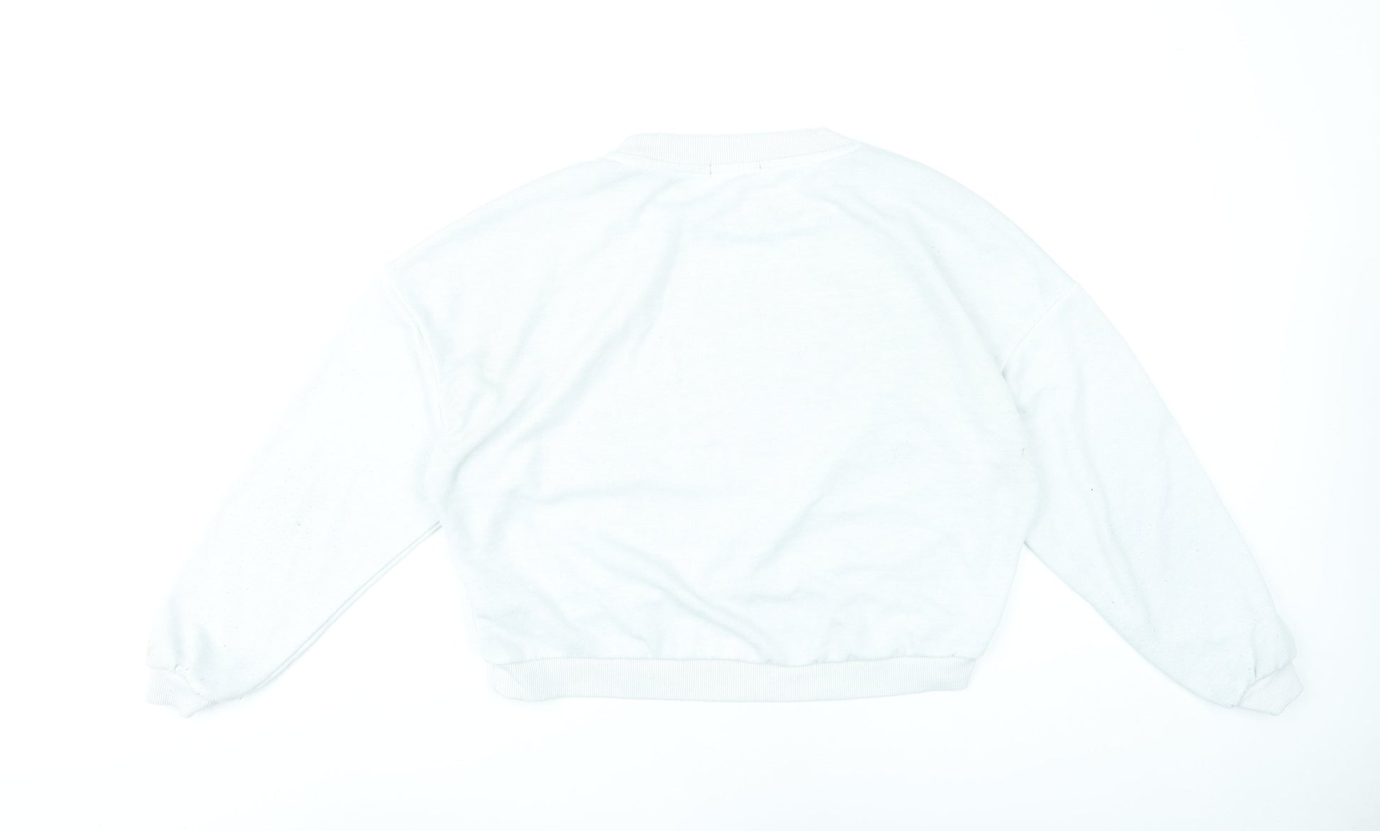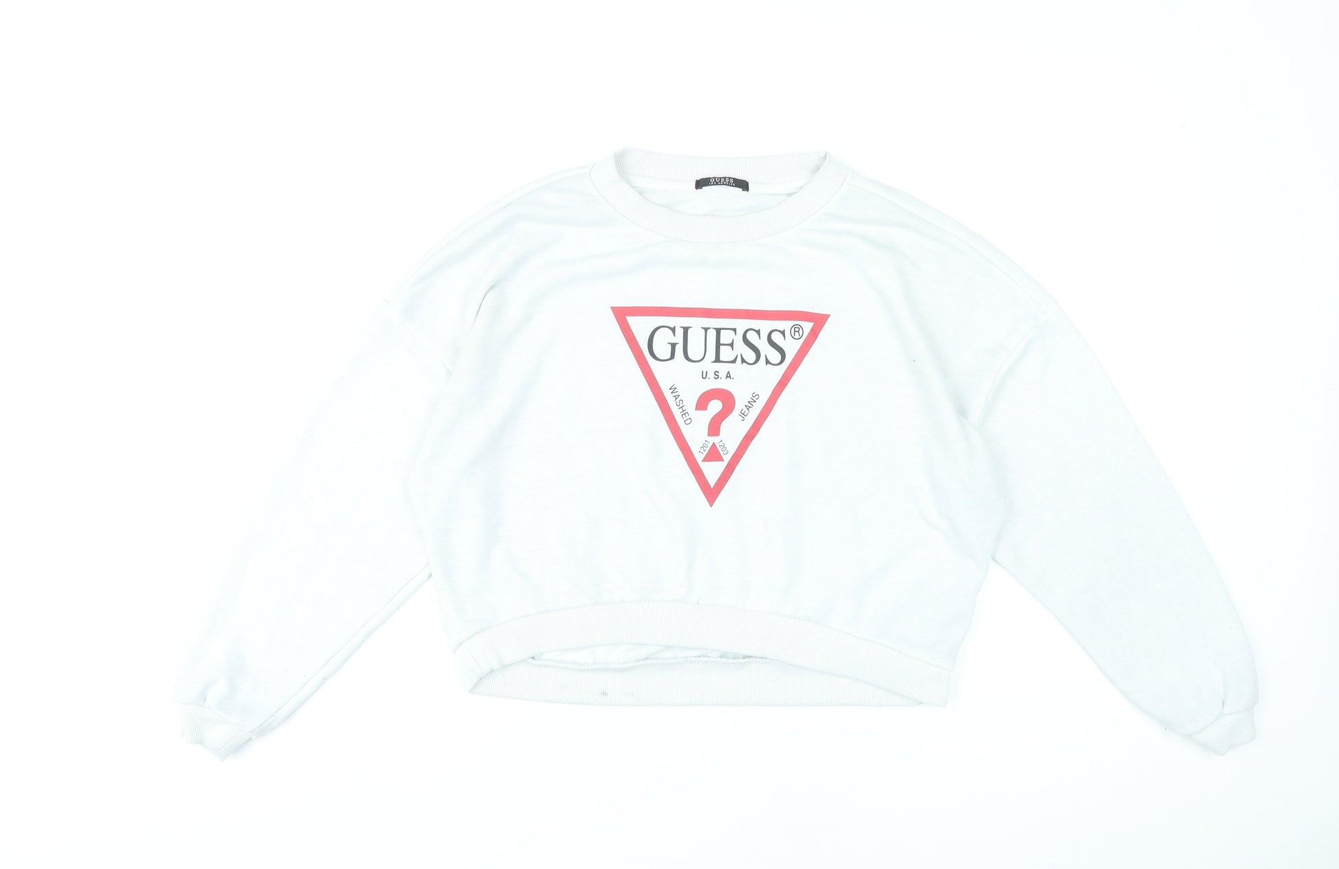 Guess Womens White Logo Pullover Sweatshirt Size UK 4 Cotton Blend