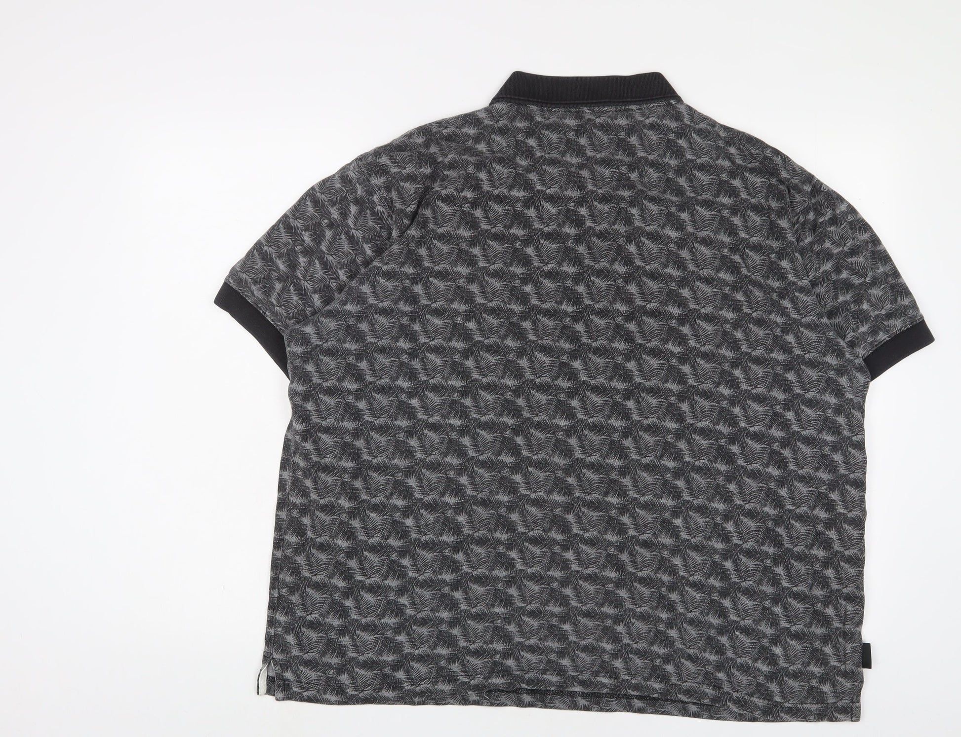 Guinness Mens Grey Geometric Cotton Polo Size XL Collared Button - Logo, Embroidered