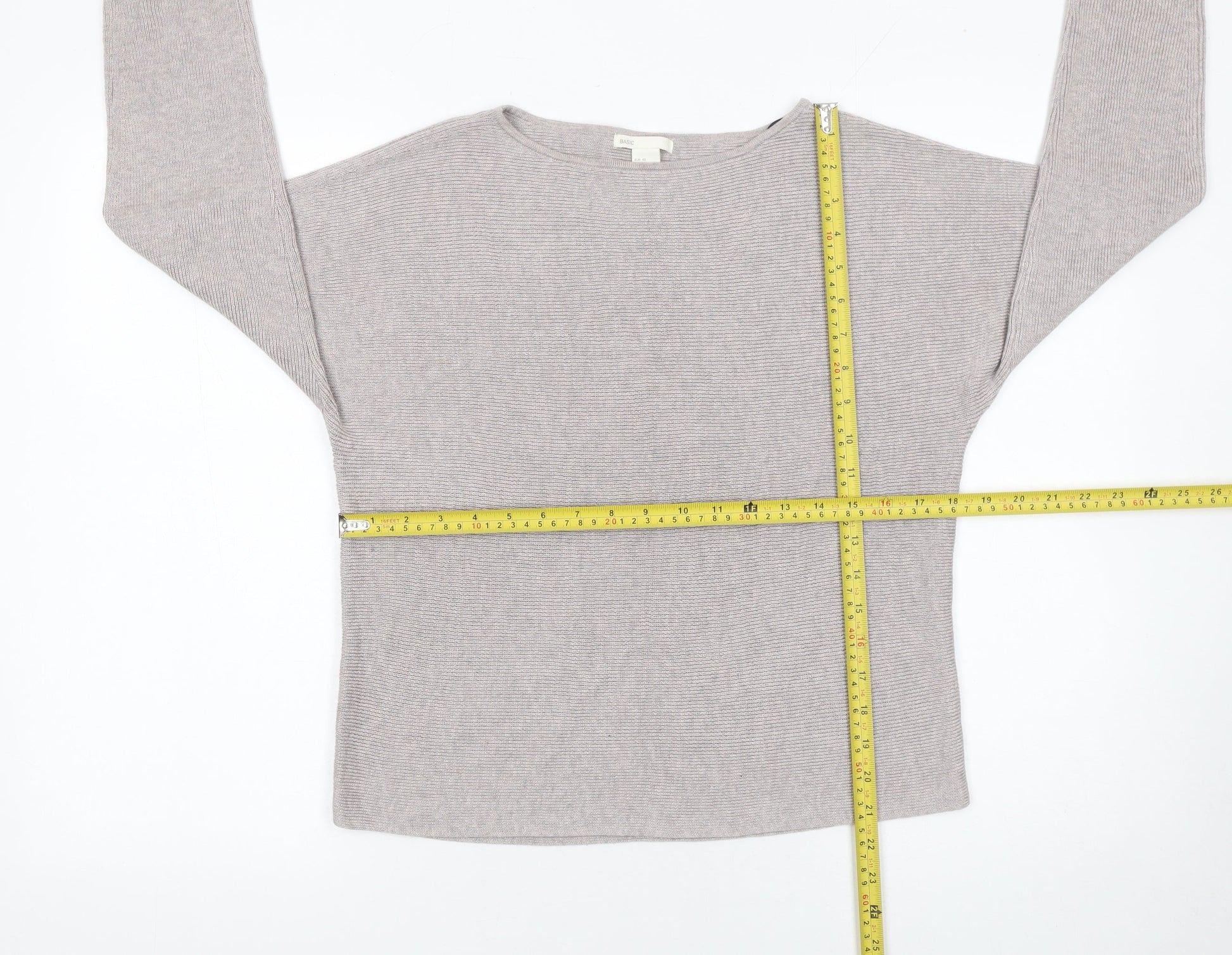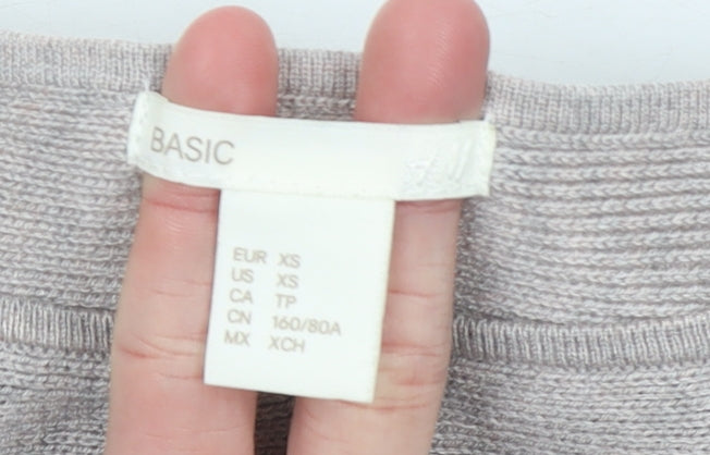 H&M Women Beige XS Boat Neck Long Sleeve Pullover Jumper