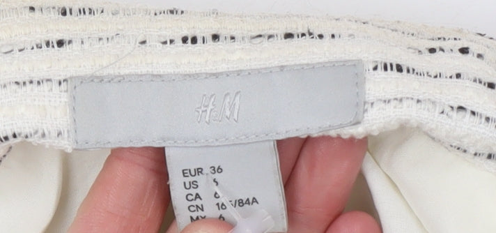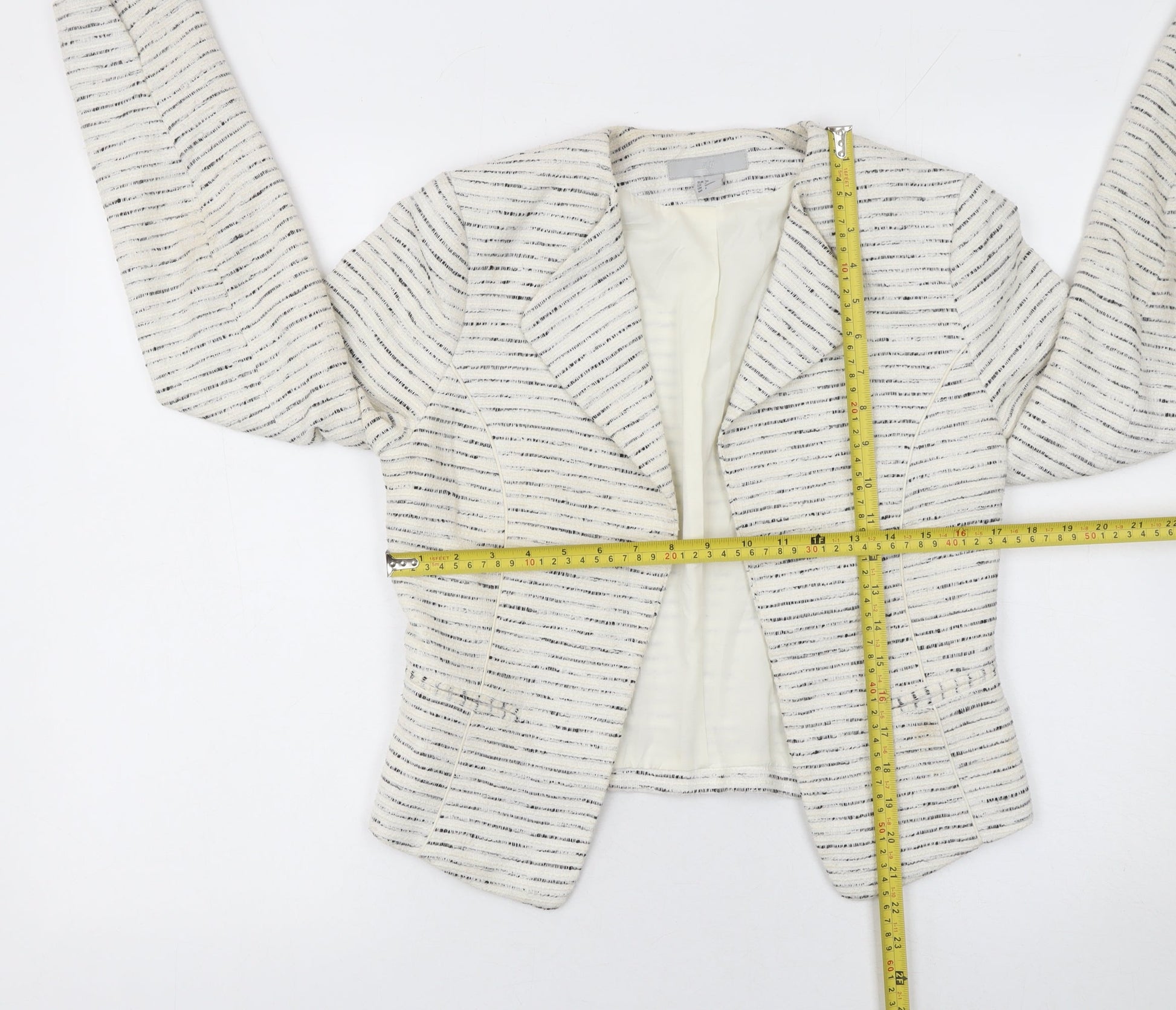 H&M Women Ivory Bouclé Striped Blazer Size 8 Tailored Jacket